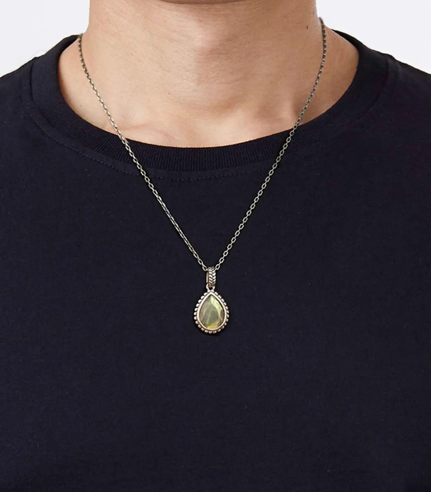 Omdat mannen ook recht hebben op hun eigen sieraden, biedt MES–BIJOUX.fr u een selectie sieraden speciaal voor mannen. Maak uw outfit compleet met onze herenketting “HOLAN1” in 925 sterling zilver.Details: 925 sterling zilveren ketting en hanger bezet met grijs/groene labradoriet.