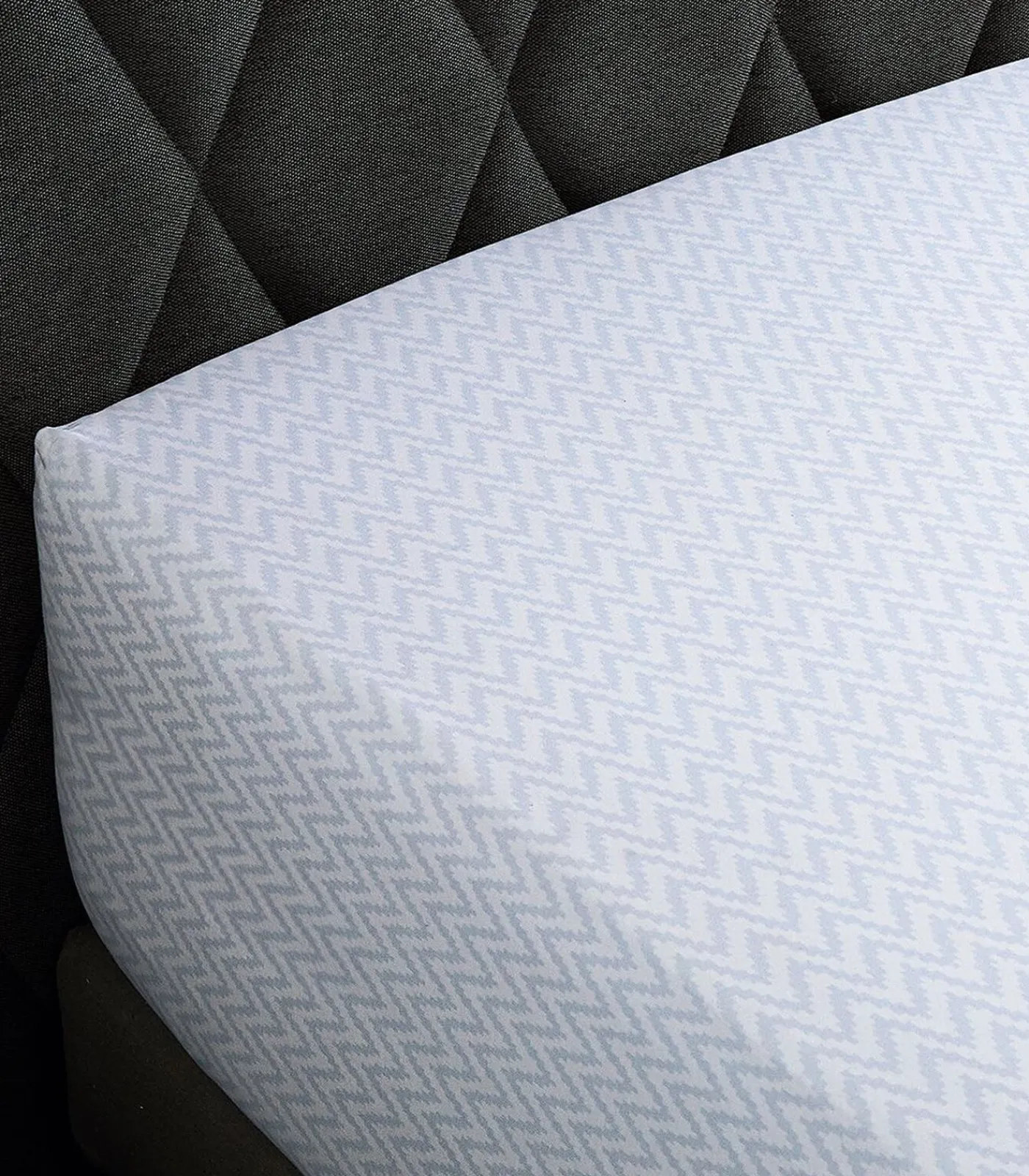 Lichtblauwe visgraatprint op optisch witte achtergrond