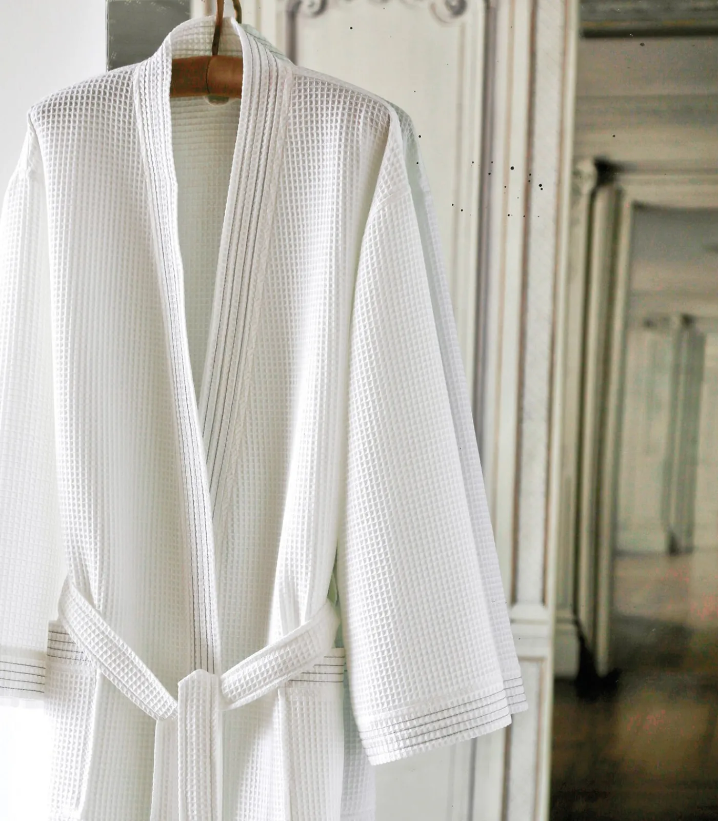 De MANOIR badjas van Blanc des Vosges is de perfecte match tussen efficiëntie en comfort. Gemaakt van 100% katoen en 420g/m² honingraatweefsel. Het is absorberend, comfortabel, van hoge kwaliteit en verkrijgbaar in een reeks tijdloze en elegante kleuren. Met zijn gemengde snit is hij geschikt voor zowel een mannelijk als een vrouwelijk publiek.Deze badjas, bestaande uit een praktische lintriem en twee voorzakken, kan net zo goed worden gedragen na het baden als in cocooning–accessoires.Gemaakt in Turkije en Oeko–Tex gecertificeerd