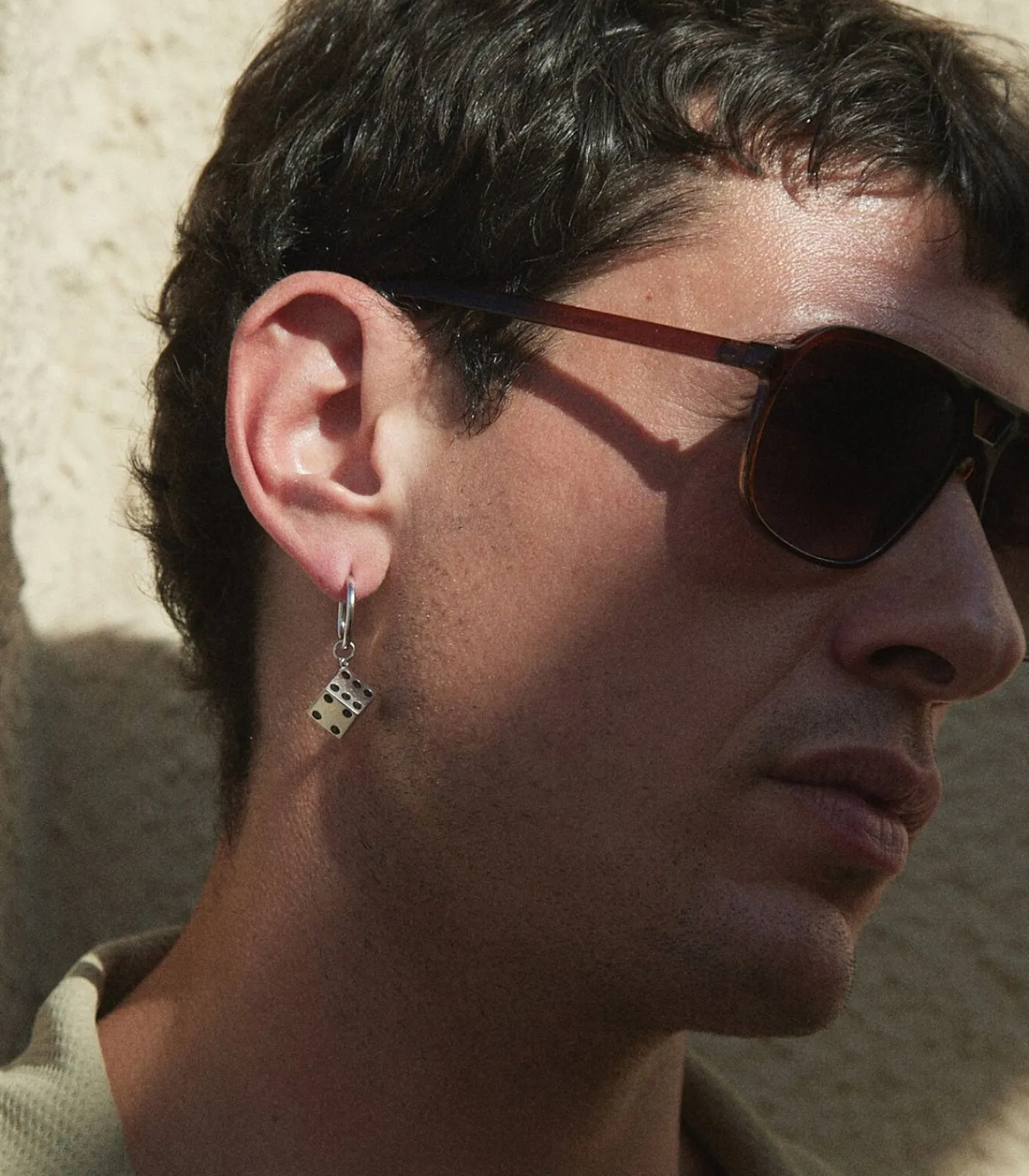 DETAILSHerenpiercing The Game, vervaardigd uit 925 sterling zilver, nikkelvrij metaal en rhodium plating. De ring is van zilver en de charm in de vorm van een dobbelsteen is van nikkelvrij metaal, geschilderd met zwarte emaille.Materiaal: 925 sterling zilver en nikkelvrij metaal.Afwerking: Rhodium en zwarte emaille.Sluiting: Kliksluiting.Afmetingen: Buitenste diameter: 16 mm Binnenste diameter: 14 mm Charm: 10 mm x 10 mm.Wordt per stuk verkocht.INSPIRATIEWe ontwerpen en vervaardigen sieraden met materialen van hoge kwaliteit en halfedelstenen.Neem deel aan het recyclingproces van Earcandy. Geef het product een tweede leven als je er moe van bent! Voor meer informatie, lees ons recyclingproces.