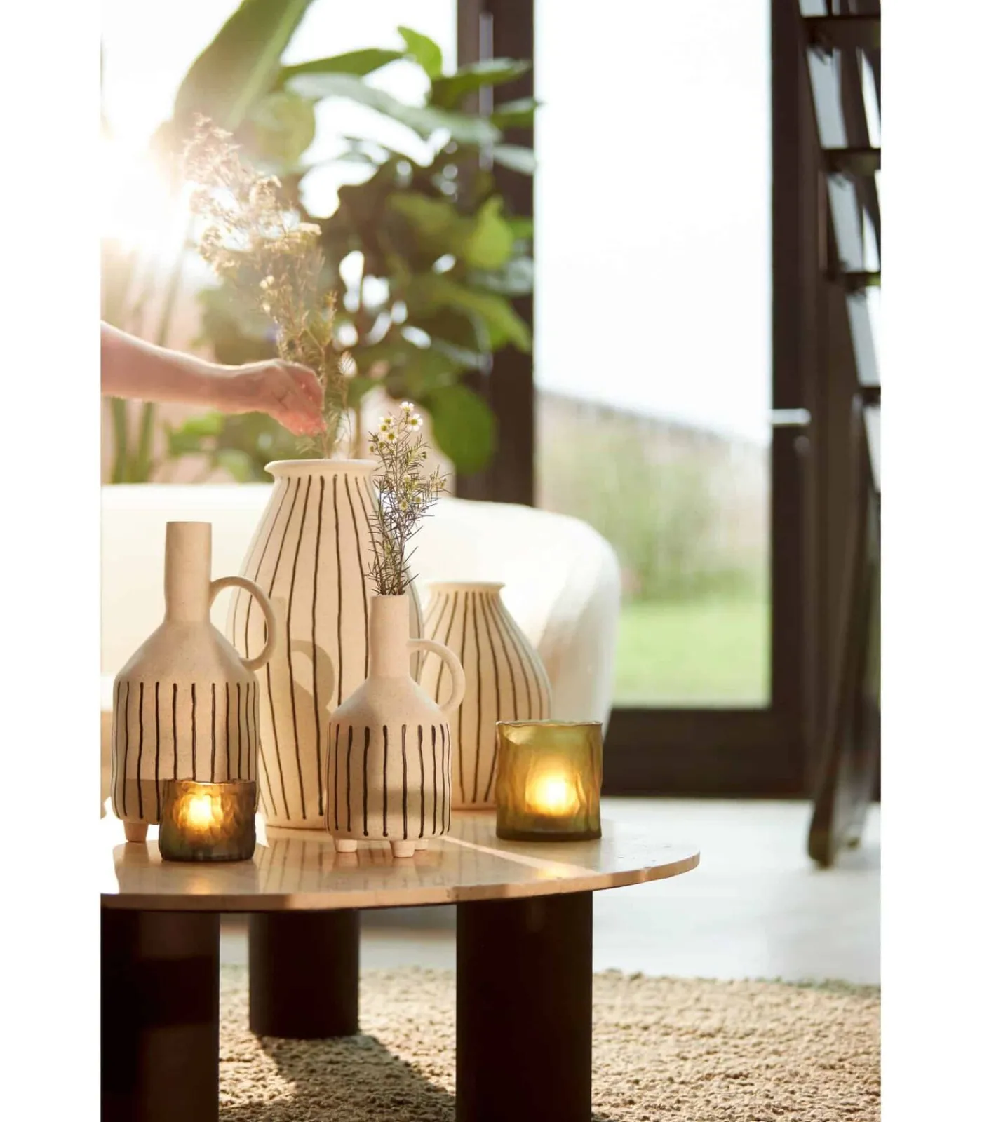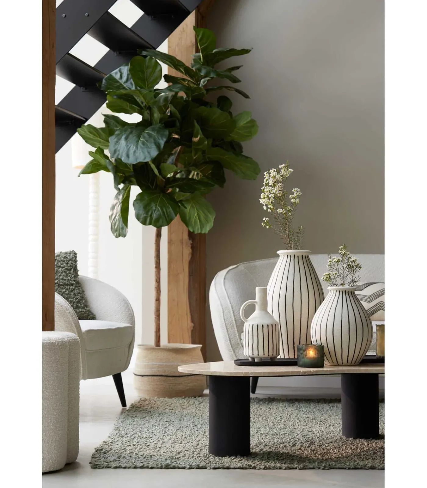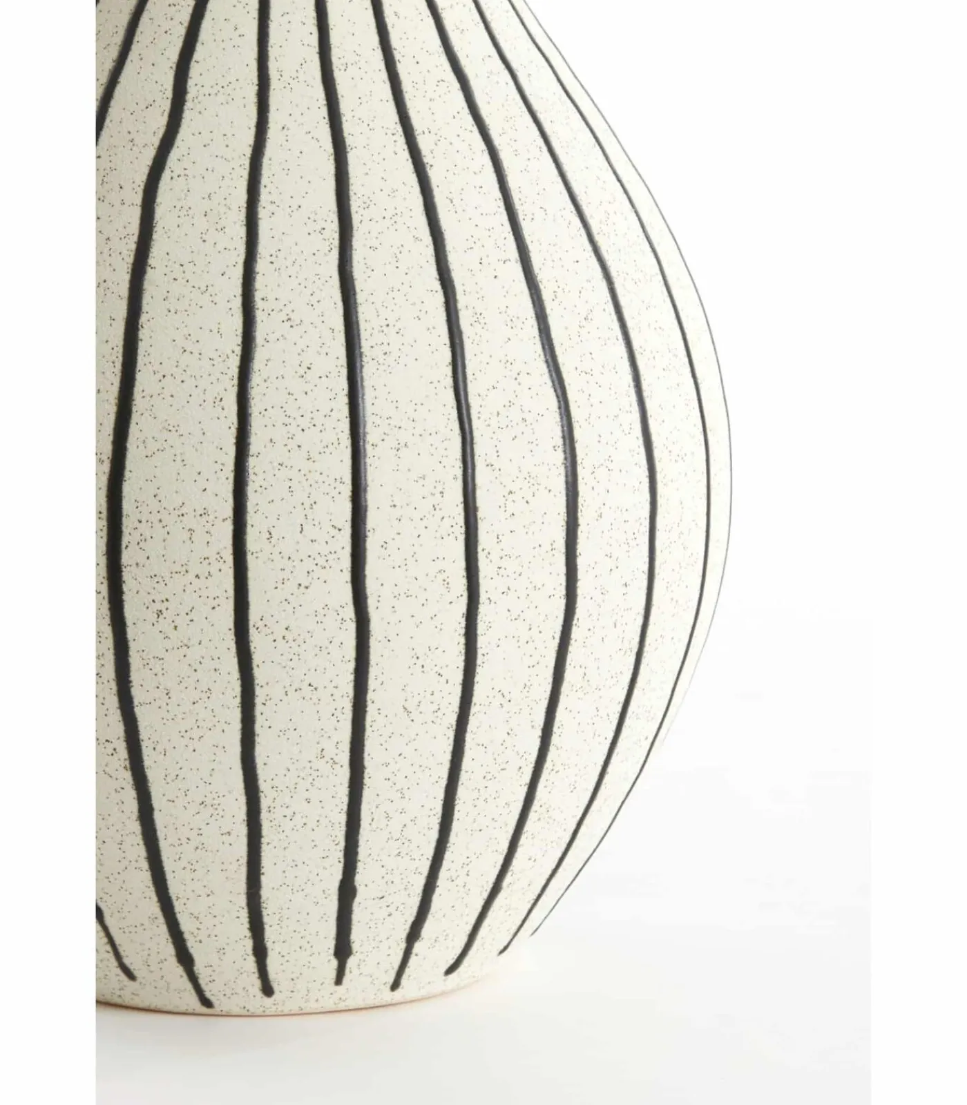 Breng een kunstzinnige flair in je interieur met de Diphu vaas van Light & Living. Deze keramieken vaas combineert een zachte crèmekleurige basis met handgeschilderde zwarte strepen, waardoor elk exemplaar uniek is. Met zijn elegante ellipsvorm en slanke hals is de vaas een stijlvolle blikvanger die zowel met als zonder bloemen een statement maakt. De vaas is vervaardigd uit hoogwaardig keramiek en heeft een matte afwerking die zorgt voor een natuurlijke uitstraling. De handgeschilderde zwarte strepen geven de vaas een artistiek karakter, waardoor hij perfect past in diverse interieurstijlen. Plaats de vaas op een dressoir, vensterbank of als middelpunt op de eettafel en laat je ruimte tot leven komen. De vaas heeft een diameter van 23 centimeter en is 29 centimeter hoog.