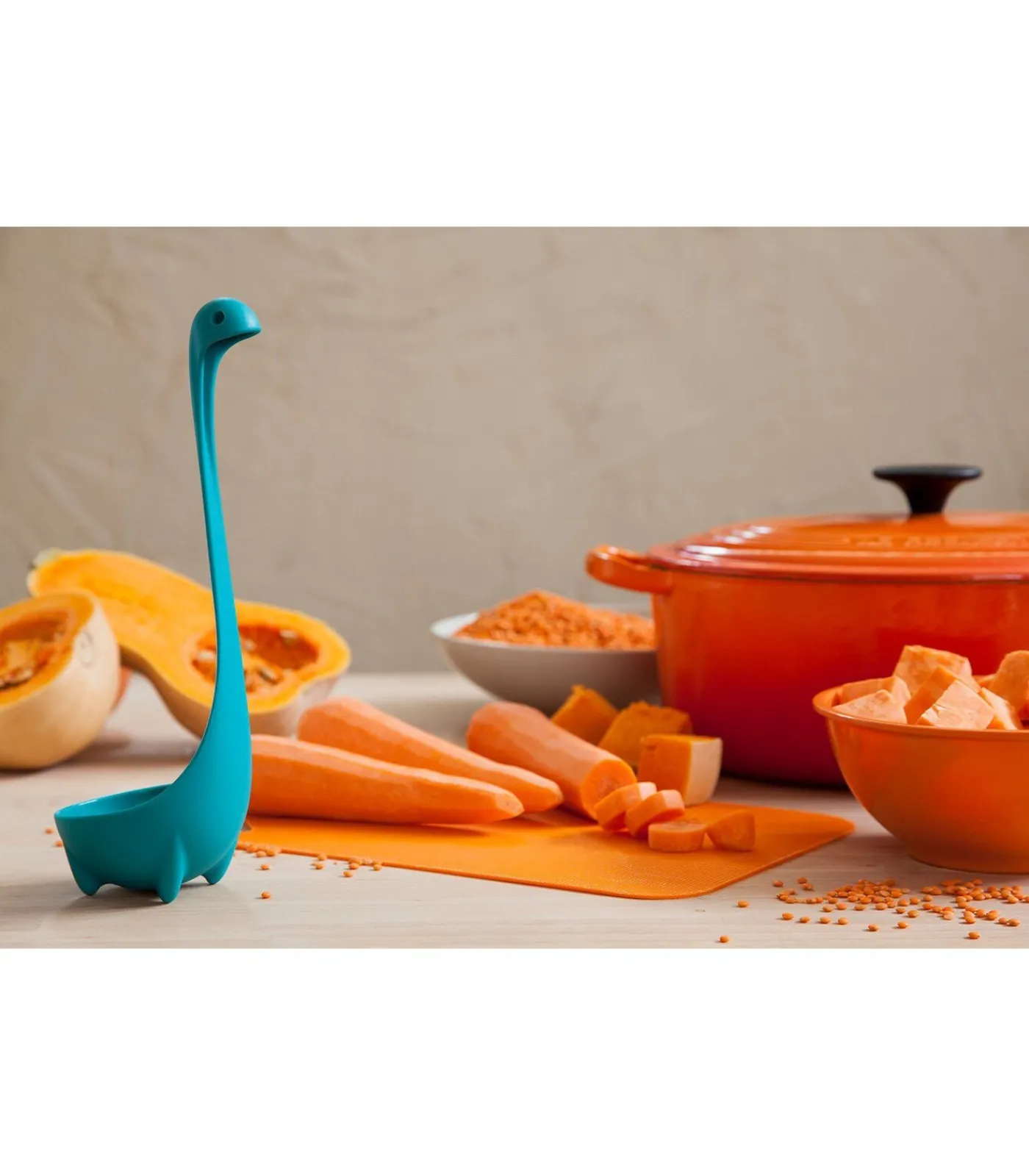 De Nessie soeplepel is geïnspireerd op het legendarische Monster van Lochness en lijkt net zoals dat monster uit je soeppan op te duiken. Maar dat is helemaal niet eng hoor, want het ziet er juist erg grappig uit. En wat ook zo handig is: door de vormgeving blijft de lepel recht overeind staan op het aanrecht, klaar om gebruikt te worden!