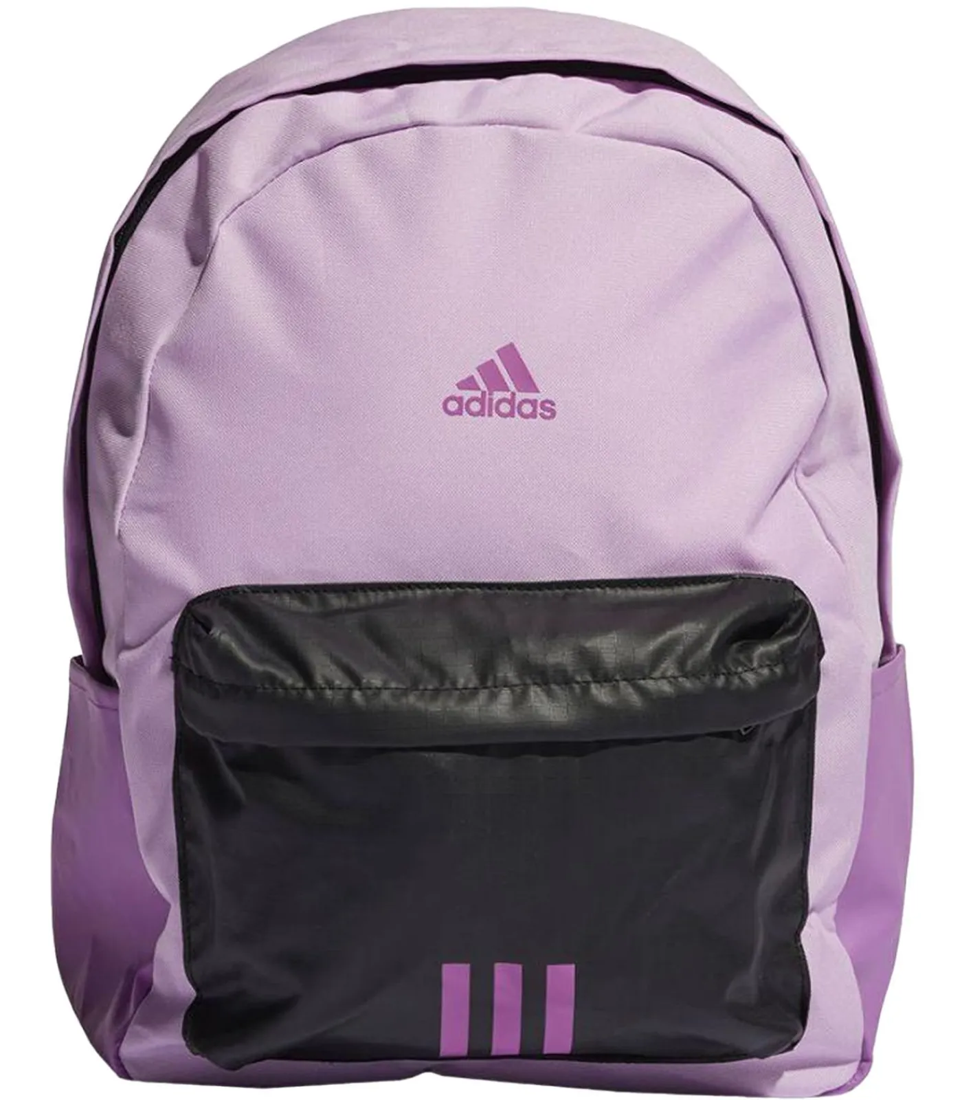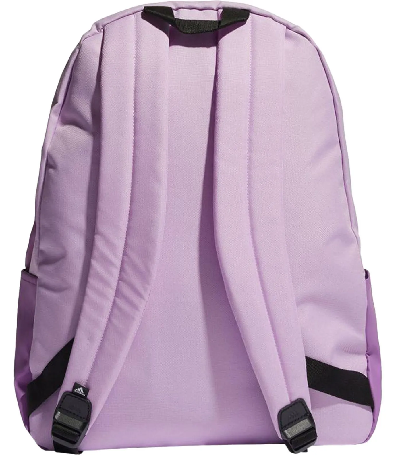 Adidas–deel uit het classic sports assortiment: een violet rugzak gemaakt van polyester. Deze zak heeft een hoogte van 44 cm, breedte van 36 cm en een lengte van 15 mm, met een inhoud van 27,5 liter. Het bezit 1 voorsak, een rit, 2 zijzakken, 1 hoofdvak met rit en is voorzien van een verstelbare schouderriem, draaghandvat en waterafstotend materiaal. Het ontwerp is versierd met contrastdetails, het Adidas logo en gestreepte details.