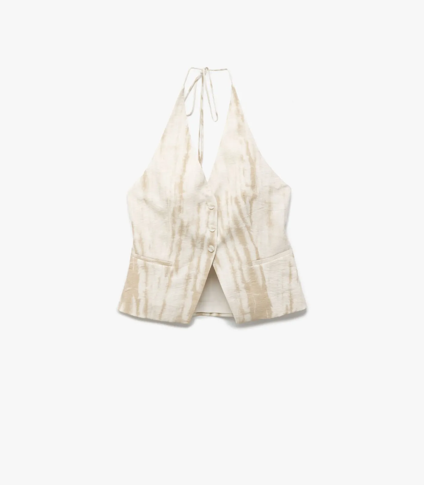 Viscose fabric buttoned V neck tie detail patterned vest.