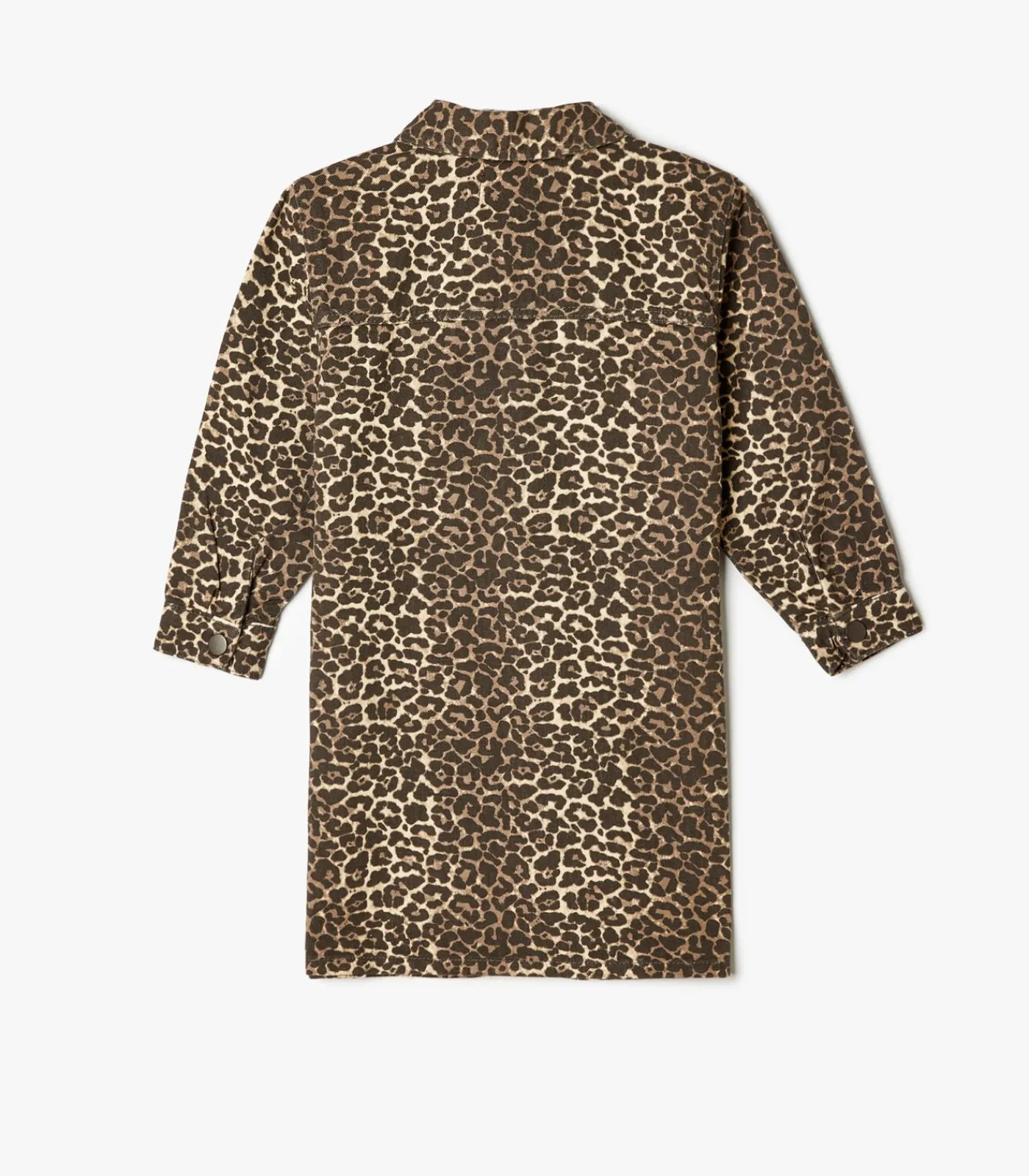 Rotatie afdruk Luipaard Normaal Stijf Weinig slijtage Dubbele zak met klep Knielengte Lange mouw Overhemdkraag Jurk