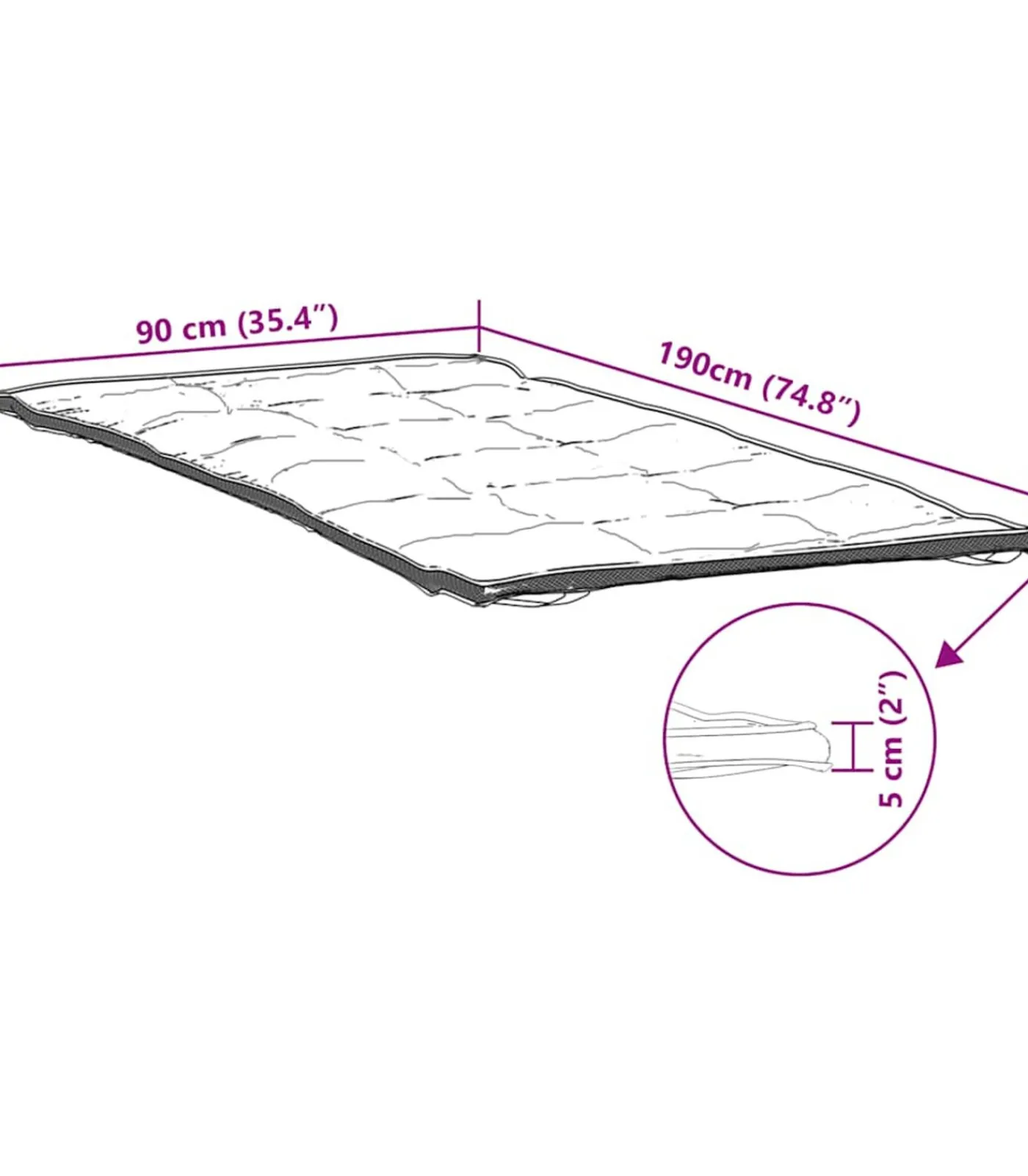 Afmetingen: 90 x 190 x 5 cm (B x L x D)