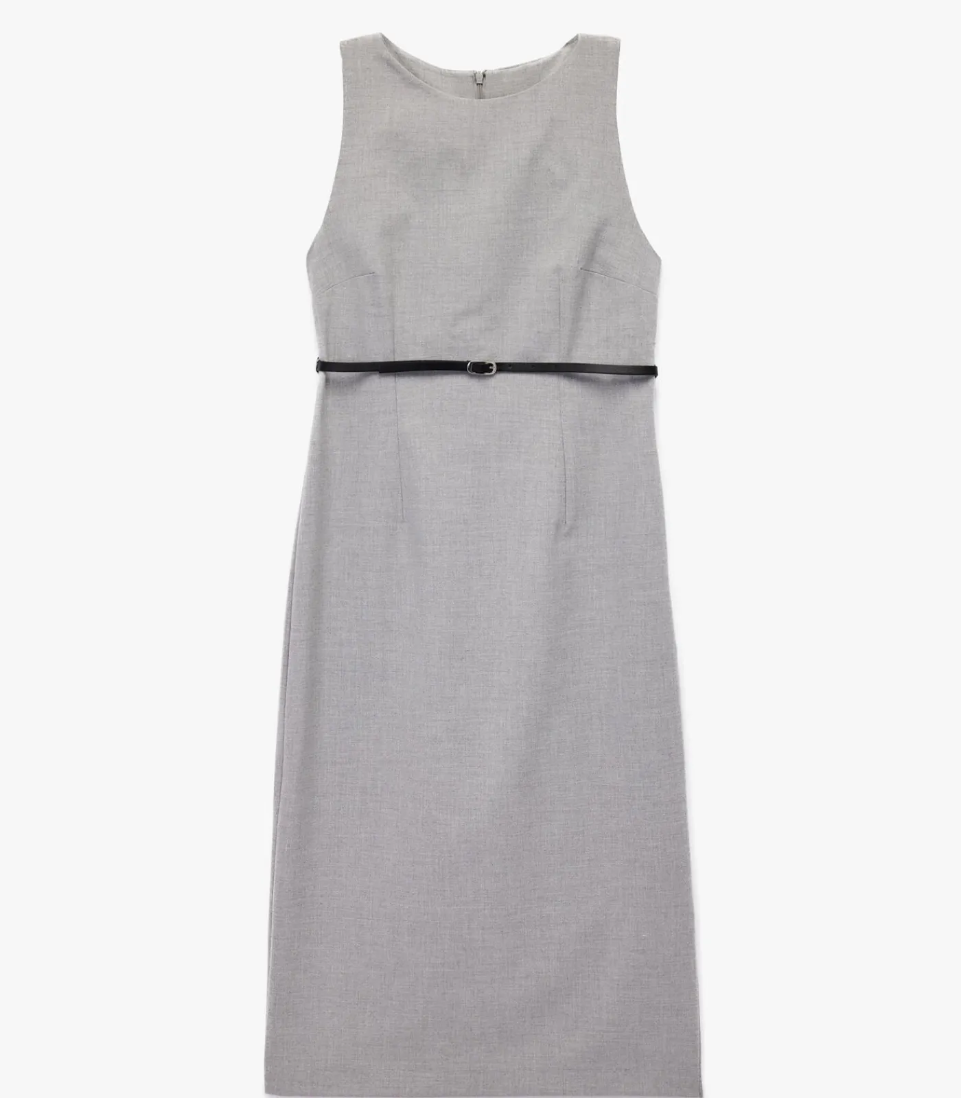 Koton Slim fit sleeveless crew neck belted midi column dress.
