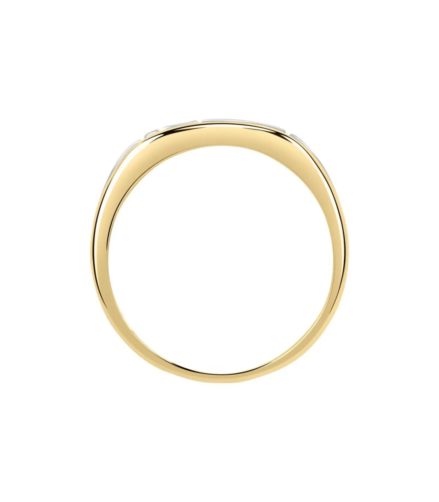 Bluespirit herenring, Gent Collectie, ref. P.13U103000125, in 750 geelgoud, zirkonen, beschikbare maten 21, 23, 25, zirkoonsteen. Het juweel wordt verzonden met originele Bluespirit verpakking en 2 jaar garantie. Bluespirit Gent Collectie: een ultra verfijnde mannencollectie, bestaande uit ringen, kettingen en armbanden voor hem, met gestructureerde vormen en kostbare materialen, zoals witgoud en geelgoud, die gecombineerd worden met een klassiek en elegant design,