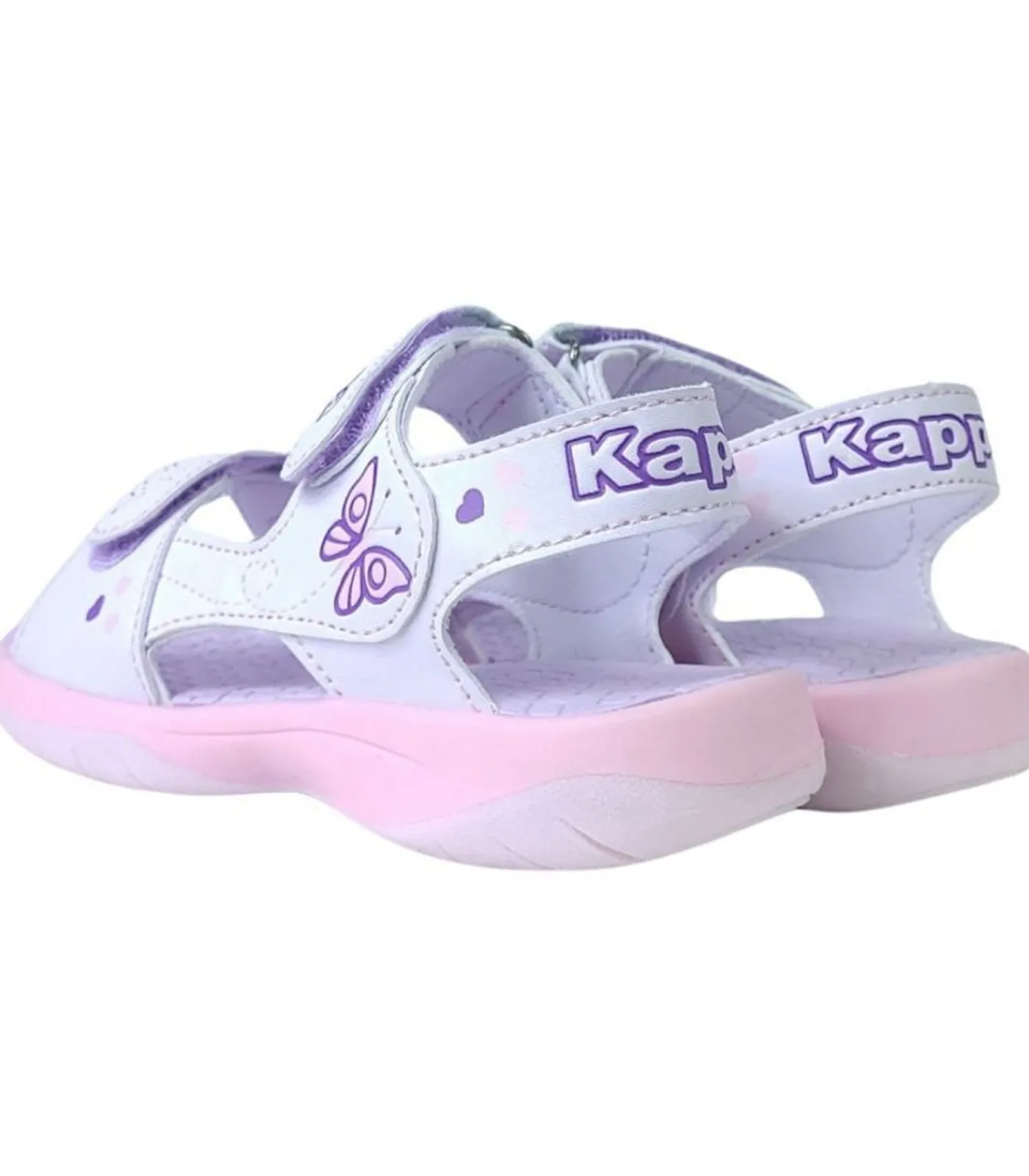 Kappa’s TITALI–merk biedt deze paarse zandalen met een synthetisch bovenstuk en gegrepen buitenzool. Deze zandalen hebben een lage hak en een open teenstijl, met een ontwerp dat bevat val, reliëf, harten en het logo van de merknaam. Het ondersteel is gedempt en er is een dubbele raaksluiting toegepast om de voet te beschermen.