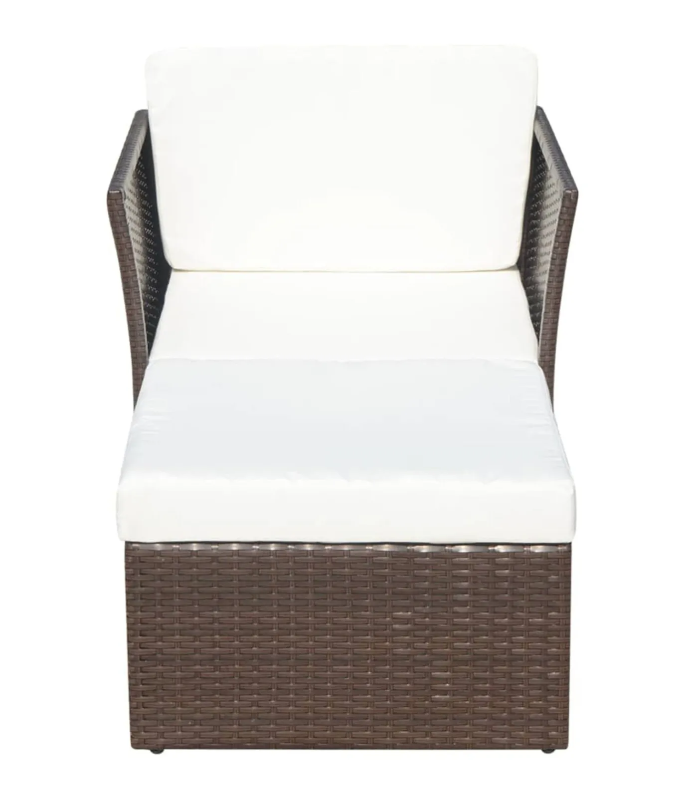 Levering inclusief 1 stoel, 1 voetenbank, 1 rugkussen en 2 zitkussens. Opmerking: wij raden aan de set af te dekken wanneer het regent, sneeuwt of vriest.