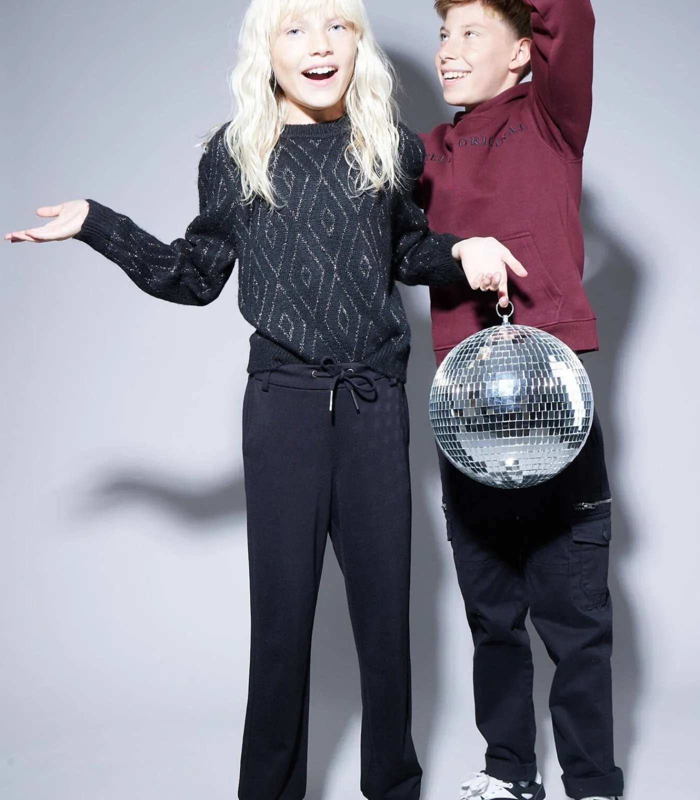 VANIDA meisjesbroek met rechte pijpen en hoge taille, ontworpen voor een comfortabele, casual–chique stijl. Deze camelkleurige stijl heeft een elastische tailleband aan de achterkant en een strikband aan de voorkant, perfect om de taille te accentueren. Hij heeft twee schuine zakken aan de voorkant en twee decoratieve paspelzakken aan de achterkant. De soepele, gedrapeerde broek en de enkellengte zorgen voor een modern, elegant silhouet.