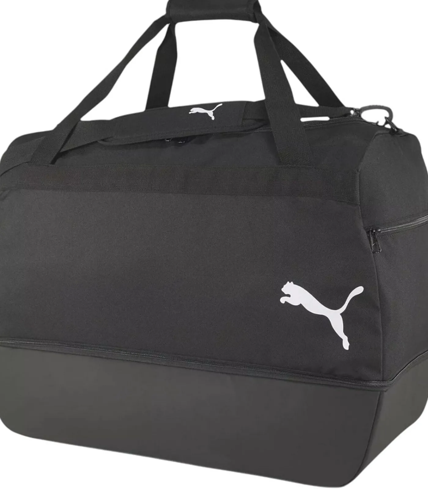 Puma Teamgoal 23 – Plunjezak zwart is een functional en sportief bagtas van merk Puma. Deze zak heeft drie verschillende zakken: één zijzak, een rits en een gaaszak. Het interieur bevat een hoofdcompartiment en een bodemcompartiment, verder is er een rijssluiting aanwezig. Op het ontwerp van de bagtas staat het logo van Puma afgedrukt.