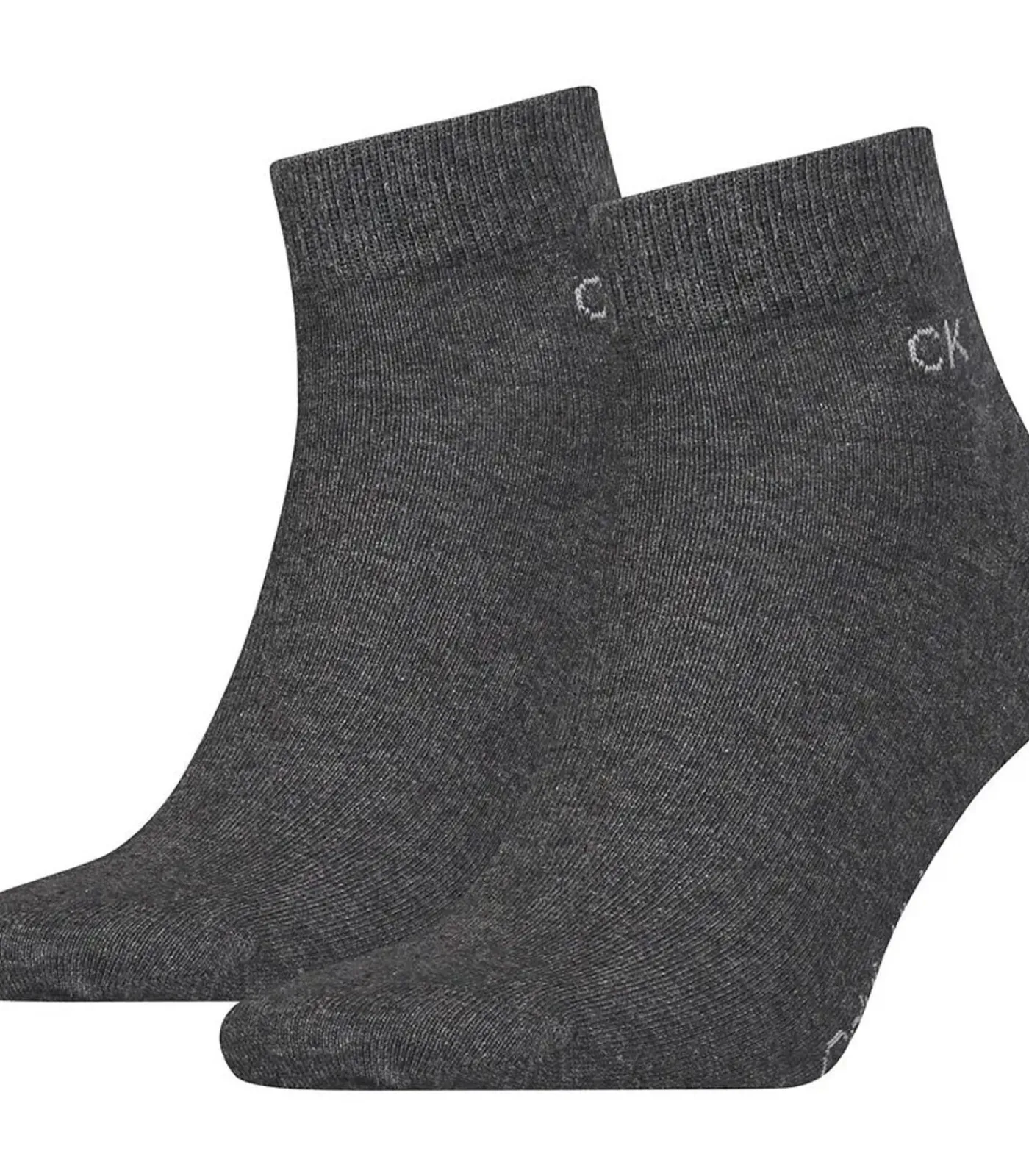 Calvin Klein Grijze Quarter–sokken met zacht aanraking en duurzame stoftechnologie. Dit model kenmerkt zich door een eenvoudig ontwerp met het beruchte Calvin Klein logo, versterkte delen in de hiel en teen en ribbede manchetten. Deze sokken zijn gemaakt van katoen, een materiaal dat bekend staat om zijn comfortabel voel en hoge kwaliteit.