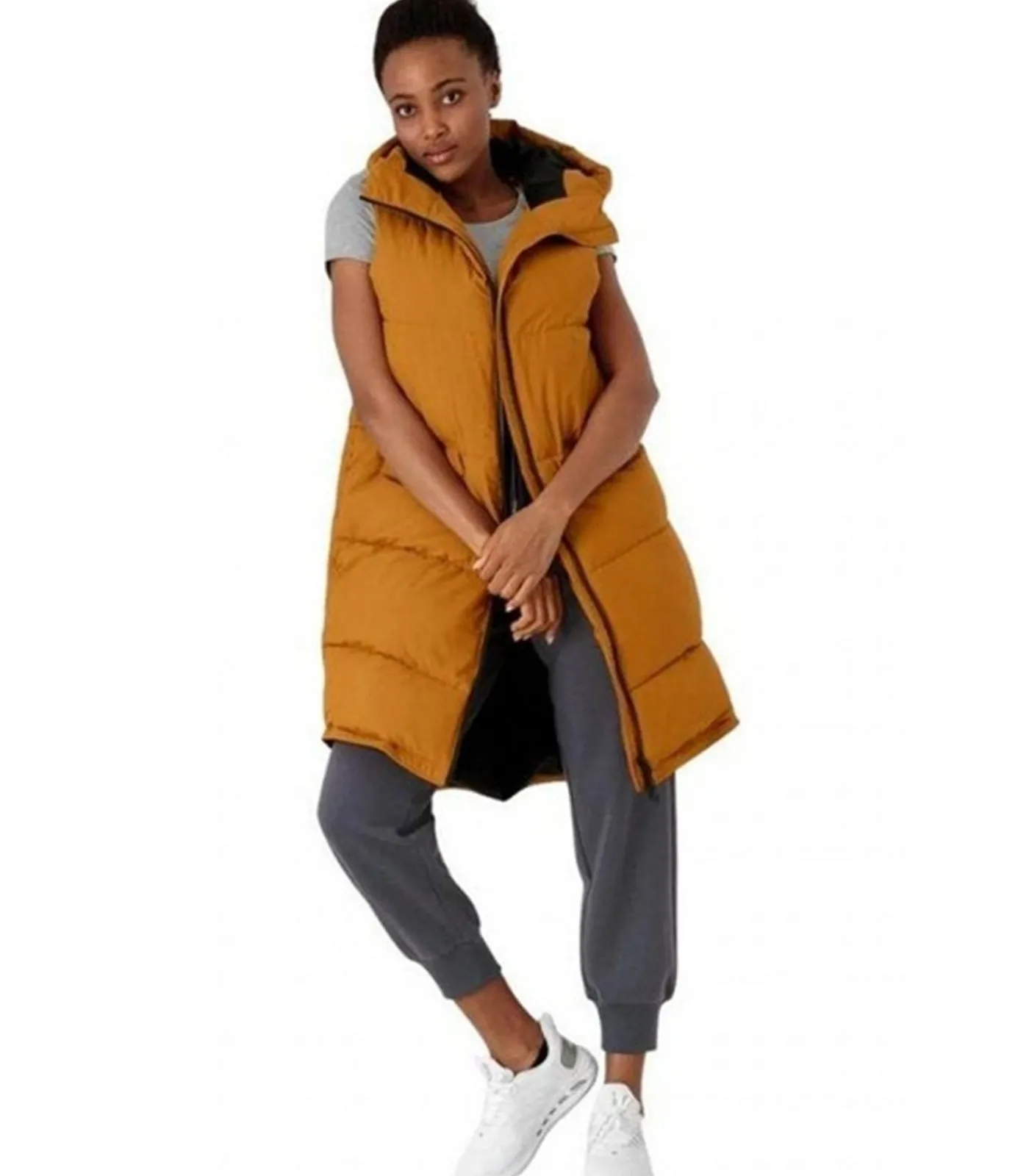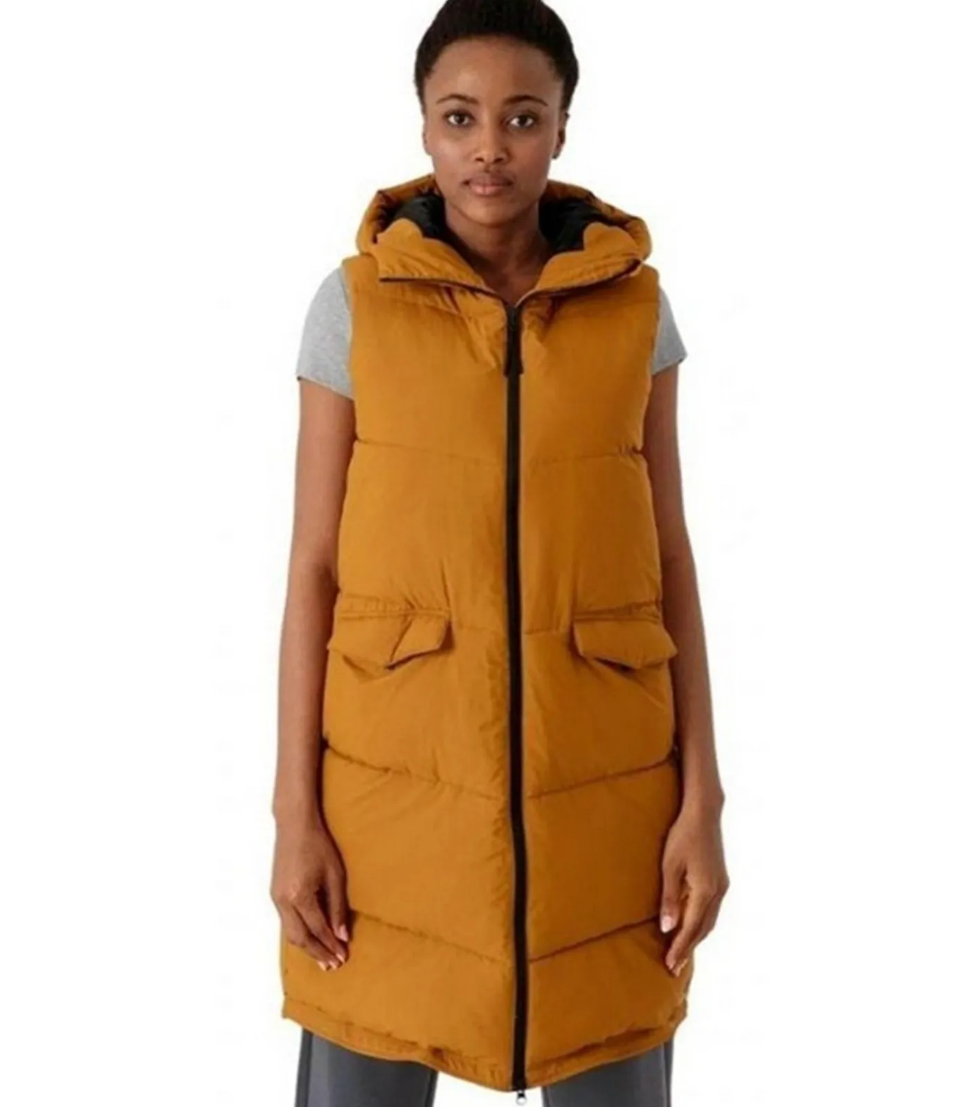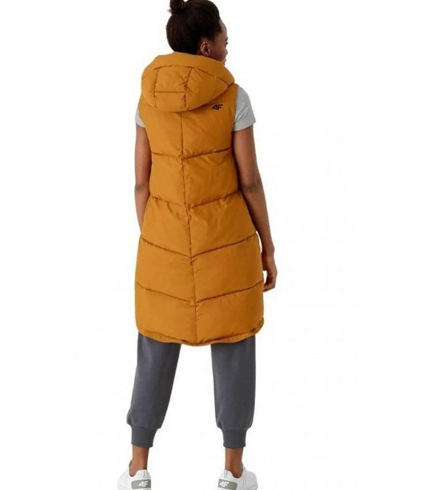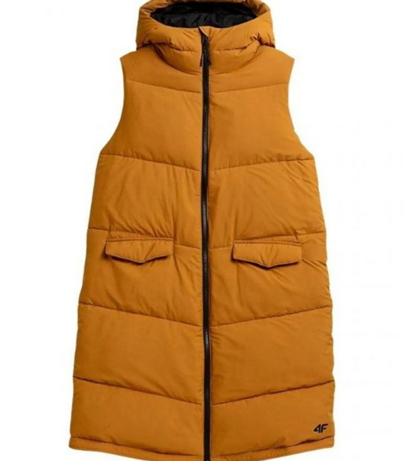 Product Description: H4Z21 – Gi Bruin (Giello Brown) met 100% polyester buitenmateriaal en interieur, inclusief vulling. Dit product kenmerkt zich door een quilted ontwerp met logo en waterafstotende behandeling (hydrofobische impregnatie). Het heeft een mouwloos type en kap met staande kraag, evenals een Windflap. De kap is integraal en bijnaai. De lengte van het jakje bedraagt knie–lengte. Het product telt twee zijzakken die gesloten worden met drukknopen en heeft volledige ritssluiting en tweewegrits. De randen zijn verstelbaar en in XS is de maat 35 inch.