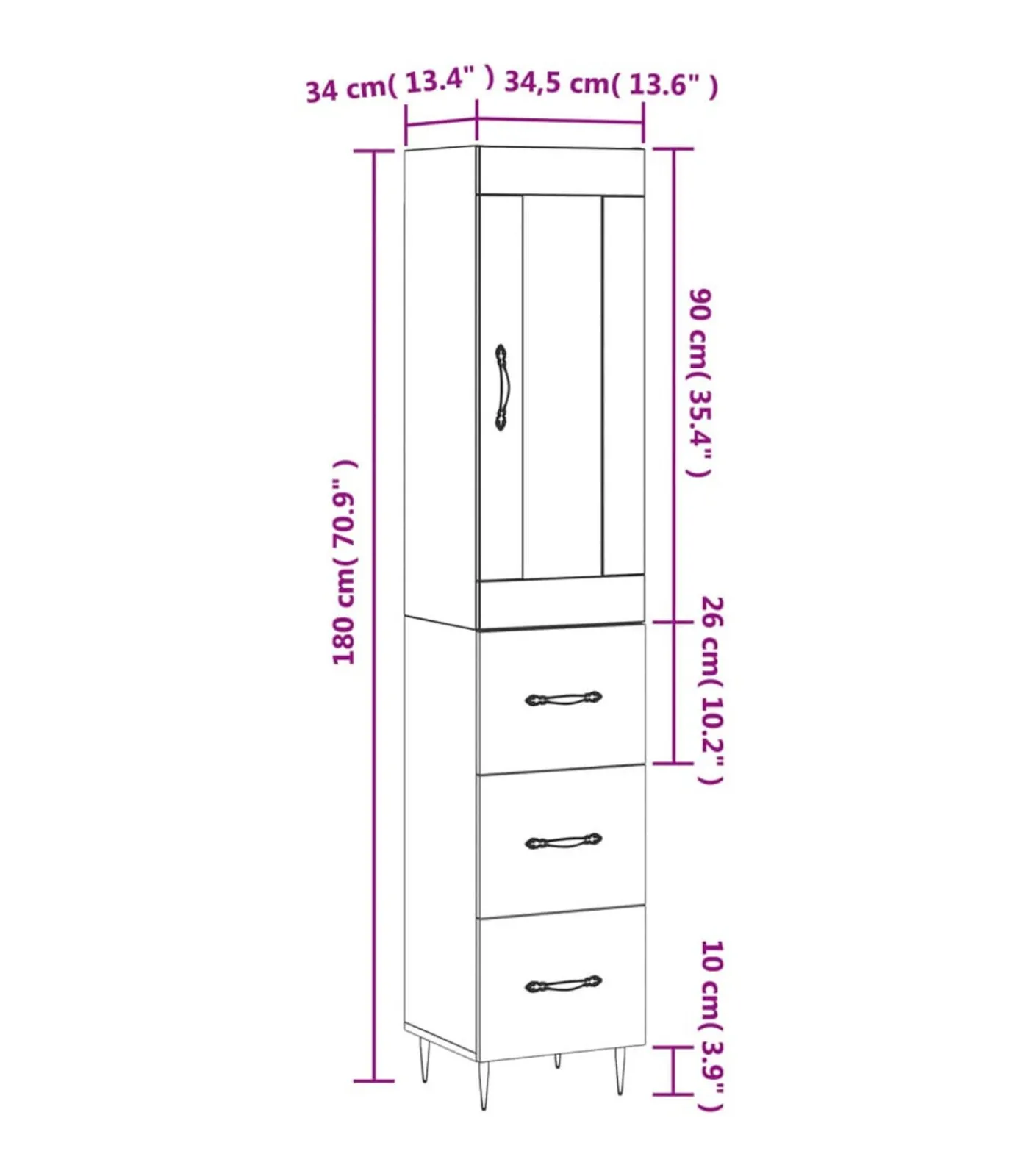 Afmetingen dressoir: 34,5 x 34 x 90 cm (B x D x H)