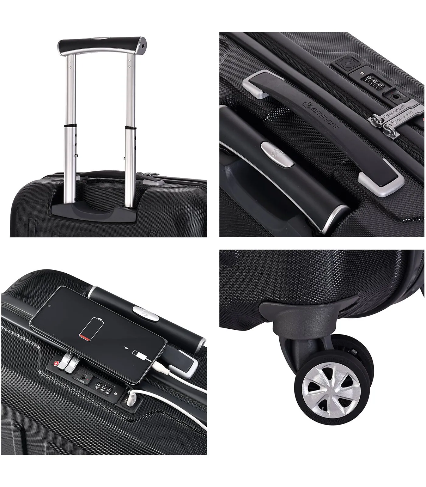 De Kapstadt Pilotenkoffer combineert stijl, functionaliteit en veiligheid om aan al uw zakelijke reisbehoeften te voldoen. Met een compact en slim ontwerp biedt deze case de ideale oplossing om uw essentiële spullen georganiseerd en binnen handbereik te houden. Gemaakt van 100% Makrolon® polycarbonaat, is de koffer duurzaam, lichtgewicht en bestand tegen intensief gebruik.Met afmetingen van 46x42x23 cm en een gewicht van slechts 3,2 kg, biedt de pilot case een royale inhoud van 37 liter, perfect voor zakenreizen of dagelijkse pendelritten. Het interieur is voorzien van een gevoerd vak voor laptops of tablets tot 15 inch, evenals drie extra compartimenten voor documenten en andere benodigdheden. Dit zorgt ervoor dat uw spullen altijd georganiseerd en gemakkelijk toegankelijk zijn.De Kapstadt Pilot Case is ontworpen voor moderne reizigers en is uitgerust met een externe USB–A en USB–C oplaadpoort. Sluit eenvoudig uw powerbank (niet inbegrepen) aan binnenin de koffer en laad uw apparaten onderweg op. Dit innovatieve ontwerp biedt gemak en efficiëntie voor professionals die altijd verbonden moeten blijven.De Add–a–Bag sleeve op de achterkant maakt het eenvoudig om de pilot case aan uw koffer te bevestigen. Hierdoor reist u handsfree en navigeert u soepel door luchthavens en treinstations.Voor extra veiligheid beschikt de Kapstadt Pilot Case over een ingebouwd TSA–goedgekeurd combinatieslot, waarmee uw spullen veilig zijn tijdens internationale reizen. Dit biedt gemoedsrust, wetende dat uw eigendommen beschermd zijn tegen ongeautoriseerde toegang.De vier 360° dubbele spinnerwielen zorgen voor een stille, soepele en stabiele rit, ongeacht de ondergrond. Of u nu door drukke terminals navigeert of over hobbelige straten rolt, de Kapstadt Pilot Case beweegt moeiteloos mee, waardoor u comfortabel en stressvrij reist.Met zijn strakke ontwerp, innovatieve functies en uitzonderlijke organisatie is de Kapstadt Pilot Case de ultieme reisgenoot voor professionals. Of u nu op zakenreis bent of gewoon uw dagelijkse benodigdheden meeneemt, deze koffer combineert elegantie en functionaliteit in een compacte en betrouwbare vorm. Kies voor de Kapstadt Pilot Case en reis efficiënt, georganiseerd en in stijl.