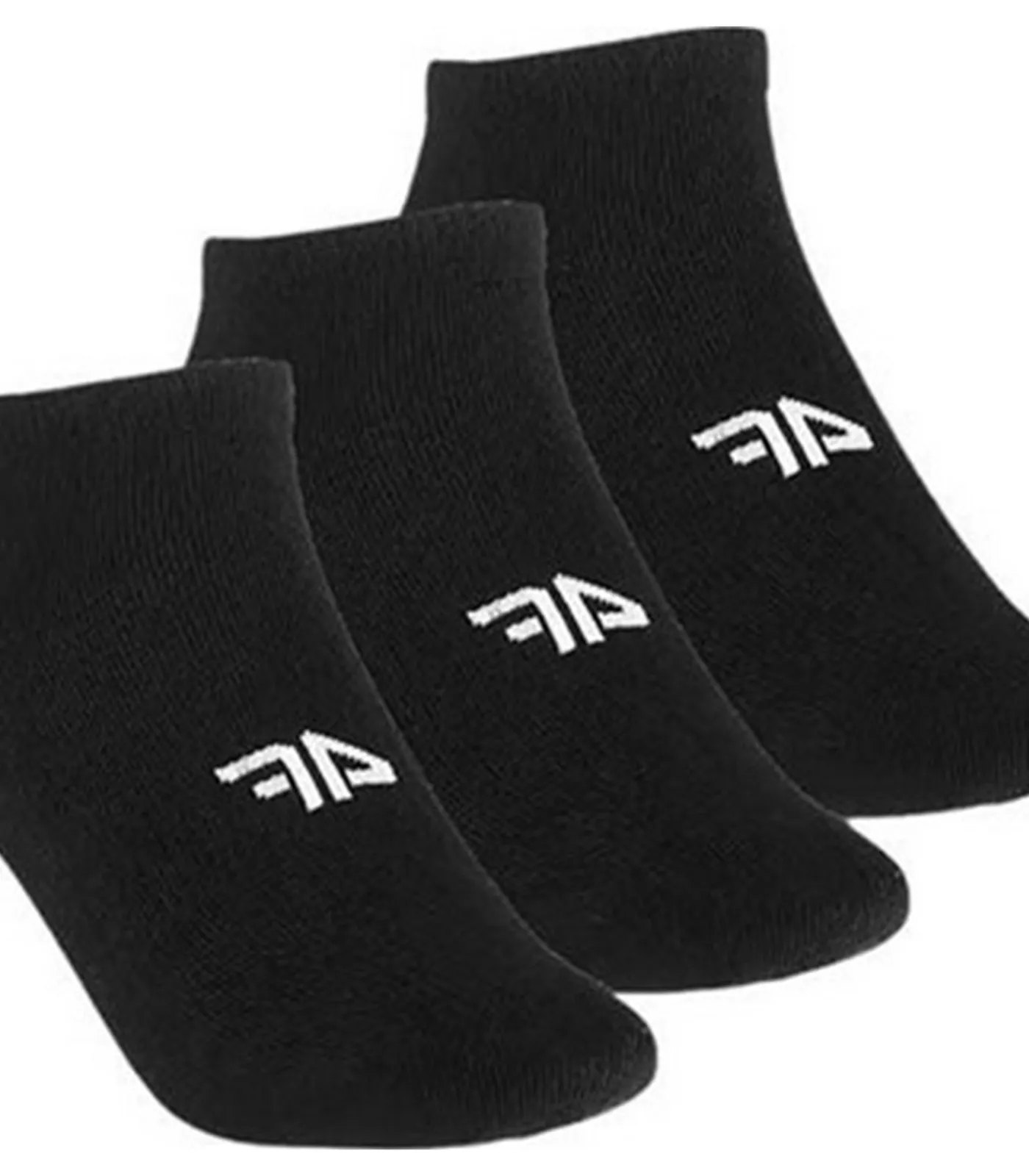 4F, M442 – Zwarte Sokken met een combinatie van 70% katoen, 27% polyamide en 3% elastaan. Deze sokken hebben een zacht aanrakingstijl en eenvoudig ontwerp met een logo. De stoftechnologie is duurzaam en flexibel, waardoor ze gemakkelijk kunnen worden aangepast aan de voet. Ze bezitten een trekkoord en platte teennaad en zijn laag gesneden, zodat ze er comfortabel en goed uitzien. Deze sokken zijn perfect voor iedereen die naar een combinatie van comfort en stijl zoekt.