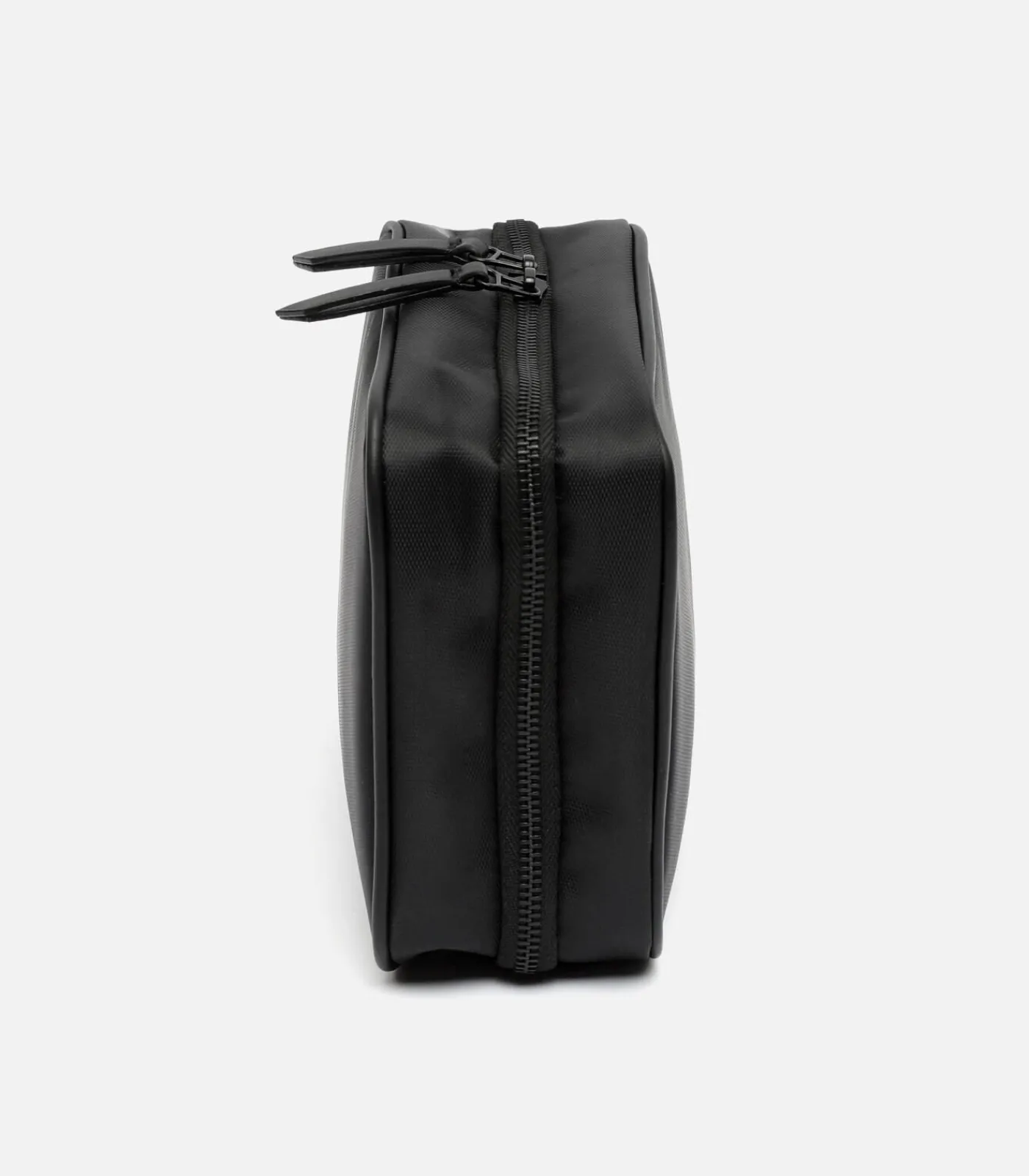 Deze zwarte toilettas is de perfecte oplossing om je spullen georganiseerd en veilig op te bergen. Het heeft een hoofdvak dat voldoende ruimte biedt om al je essentials in op te bergen, aangevuld met binnenvakken waarin je kleinere spullen efficiënt kunt organiseren, zodat je alles binnen handbereik hebt. De ritssluiting zorgt ervoor dat je spullen beschermd zijn tijdens het reizen of dagelijks gebruik.