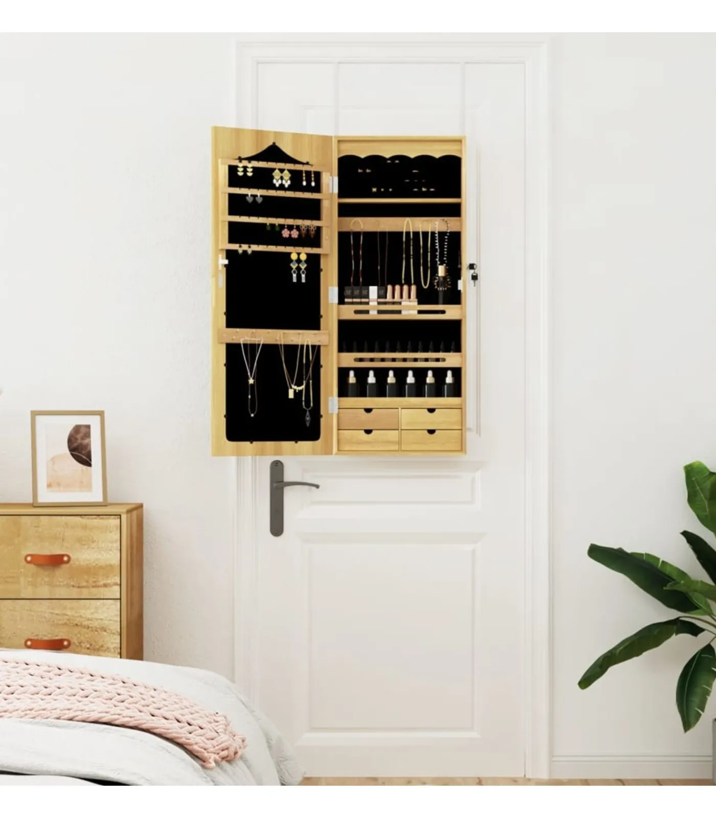 Praktische spiegel: met een spiegel is deze sieradenkast ideaal om je klaar te maken en make–up aan te brengen.
