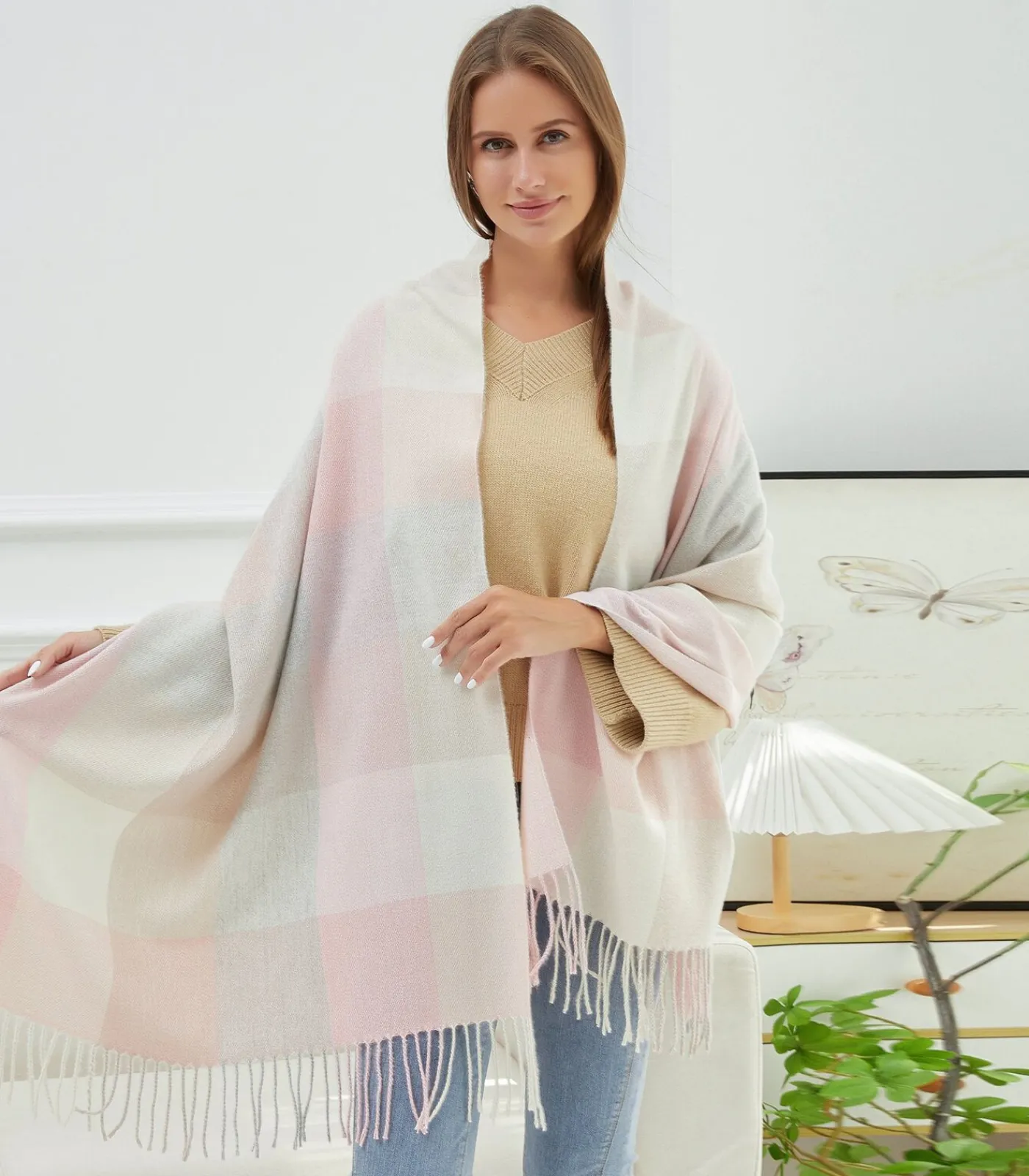 Écharpe 100% Cachemire ‘VIOLA’ door V 1969 – Luxe, Elegantie & Comfort**Productbeschrijving:**Ontdek de ‘VIOLA’ sjaal van V 1969, die warmte, zachtheid en verfijning combineert. De grote ruiten en elegante overgangen, in warme en moderne kleuren, voegen een vleugje Franse elegantie toe.**Belangrijkste kenmerken:**– **Luxe Materialen**: Gemaakt van 100% kasjmier, biedt deze sjaal uitzonderlijke zachtheid en duurzaamheid.– **Chic & Modern Design**: Grote ruiten en elegante overgangen voor een moderne en verfijnde stijl.– **Veelzijdigheid in Stijl**: Royale afmetingen (180×65 cm) die meerdere draagmogelijkheden bieden.– **Prestigieus Merk**: V 1969, bekend om zijn toewijding aan kwaliteit en luxe.Omarm de ‘VIOLA’ sjaal als een onmisbaar item in je garderobe, synoniem voor luxe, comfort en elegantie.**Productdetails:**– **Samenstelling**: 100% kasjmier– **Afmetingen**: 180×65 cm– **Merk**: V 1969– **Referentie**: VIOLAGun jezelf de luxe van kasjmier met de ‘VIOLA’ sjaal. Bestel vandaag nog voor ongeëvenaarde stijl en comfort.