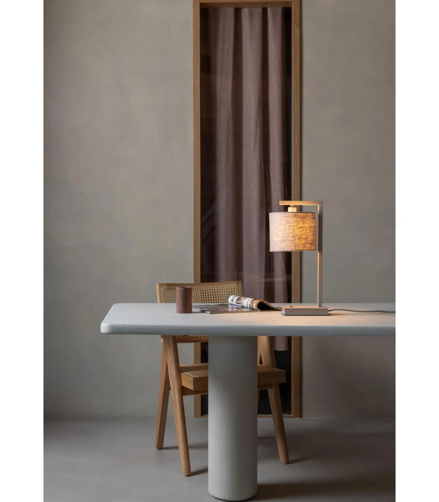 De Boston tafellamp combineert een strak, vierkant frame met een moderne, trendy afwerking en biedt keuze uit vier verschillende lampenkappen. Dankzij de handige schakelaar op de lamp voeg je moeiteloos stijl en functionaliteit toe aan je interieur. Perfect als sfeervolle eyecatcher op een bijzettafel, bureau of nachtkastje.