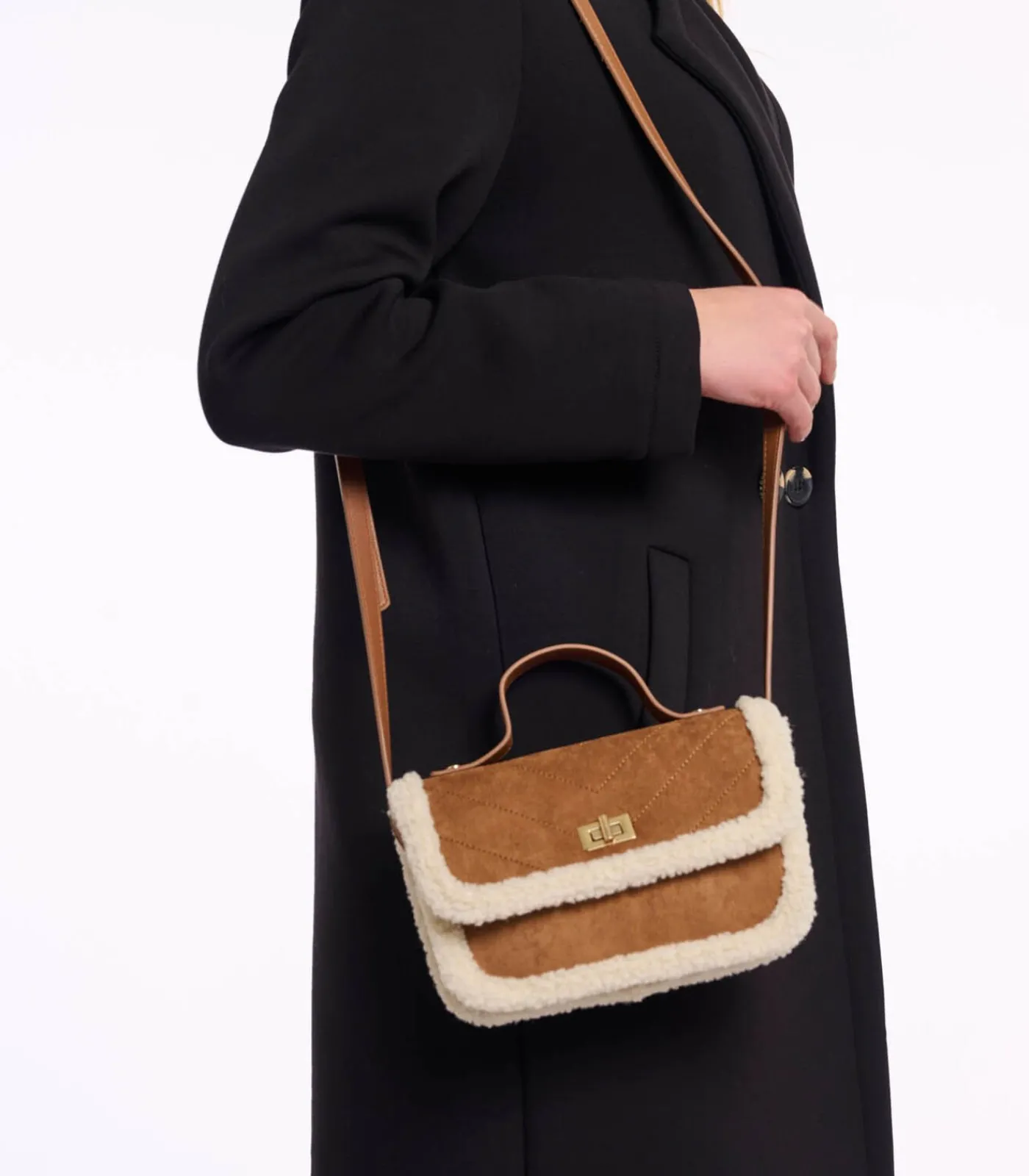 Schoudertas in lamslook, perfecte maten voor het hoognodige. Deze tas is gemaakt van aanraakbaar imitatiesuède en heeft een stijlvolle flap die wordt afgesloten met een verborgen rits, zodat je spullen veilig zijn. Bovendien kun je hem comfortabel dragen dankzij de verstelbare schouderriem, of je hem nu dicht op je lichaam draagt of wat lager.