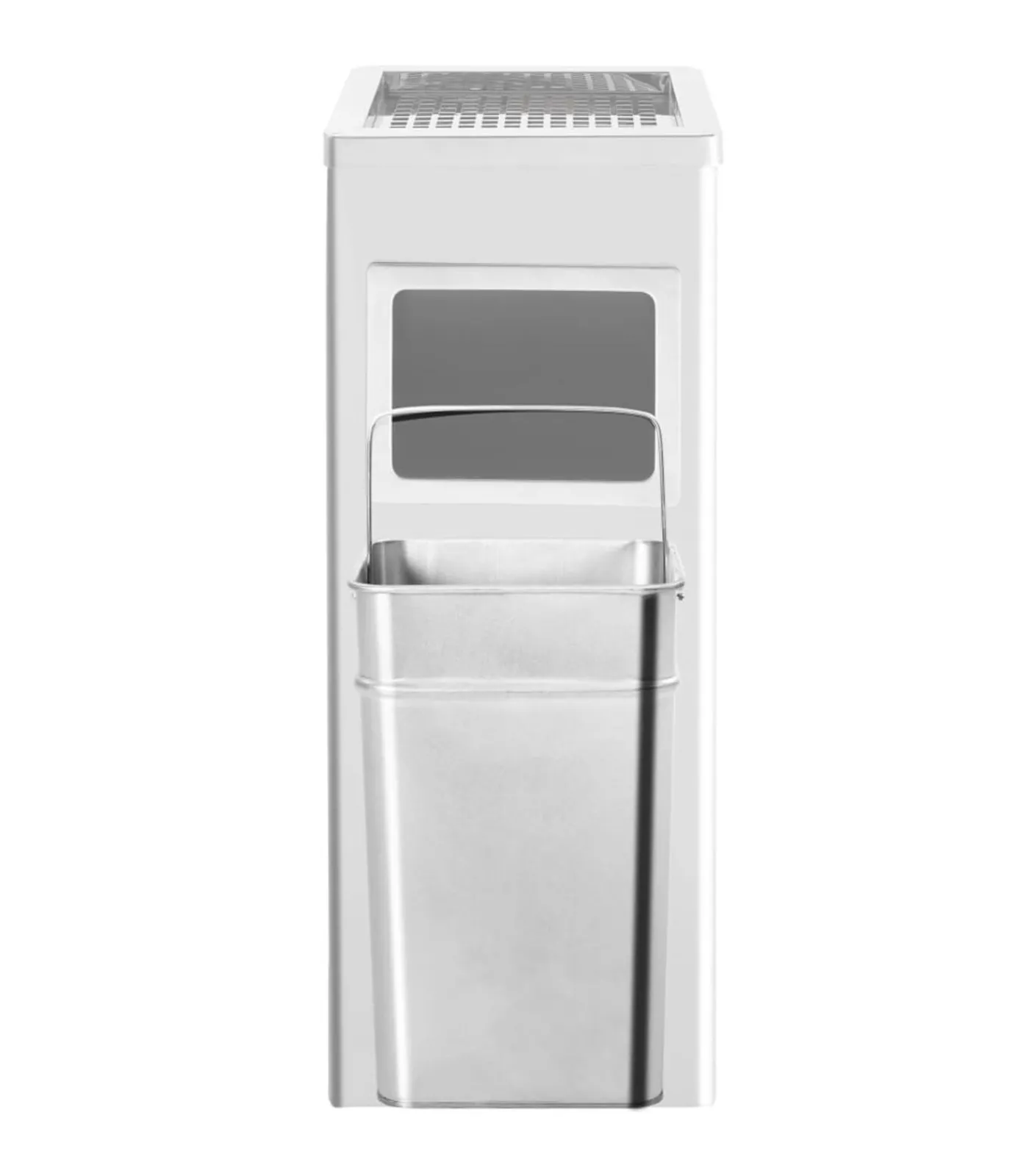Onze hoogwaardige asbak/prullenbak wordt gekenmerkt door de elegantie van roestvrij staal en een asbakontwerp. Hij heeft niet alleen een geavanceerd ontwerp, maar is ook zeer functioneel. Onze afvalcontainer heeft een grote afvalbak met daarboven een asbak. Hij kan zowel binnen als buiten worden gebruikt en is dus ideaal voor hotels, restaurants, kantoren, enz.