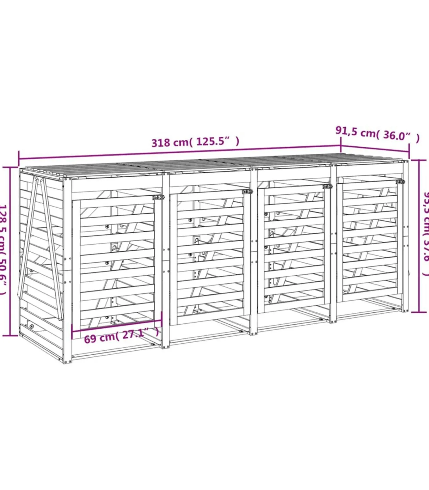 Deze viervoudige houten containerberging houdt de afvalbak in je tuin uit het zicht en zorgt voor een mooie en nette omgeving.