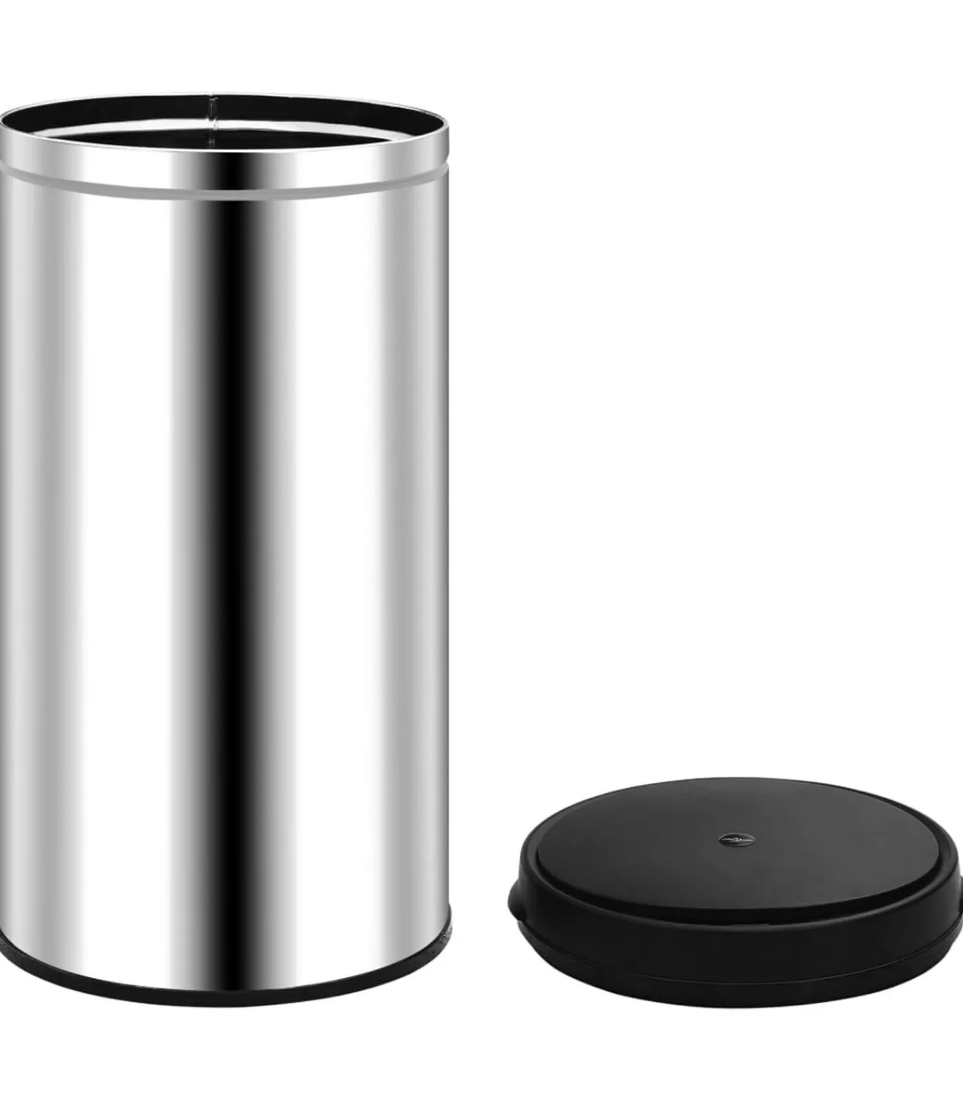 Deze prullenbak heeft een roestvrijstalen behuizing en een sterk ABS deksel, waardoor hij duurzaam en gemakkelijk schoon te maken is. Hij heeft een ring om de zak te bevestigen en het deksel kan eenvoudig worden afgenomen. Je kan de sensor uitschakelen om het deksel handmatig te openen en sluiten.
