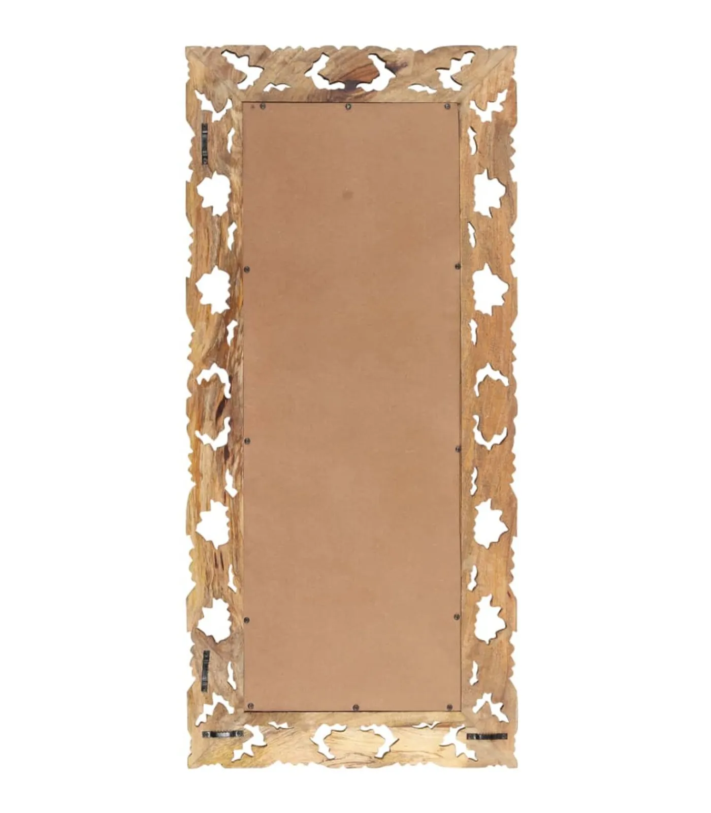 Massief mangohout is een tropisch hardhout. Het heeft de kracht om veel gewicht te dragen en is bestand tegen slijtage. Bovendien zorgen het voortreffelijke vakmanschap en de prachtige houtnerven ervoor dat elke houten spiegel net iets anders is dan de rest. Het met de hand gesneden patroon draagt bij aan de schoonheid.