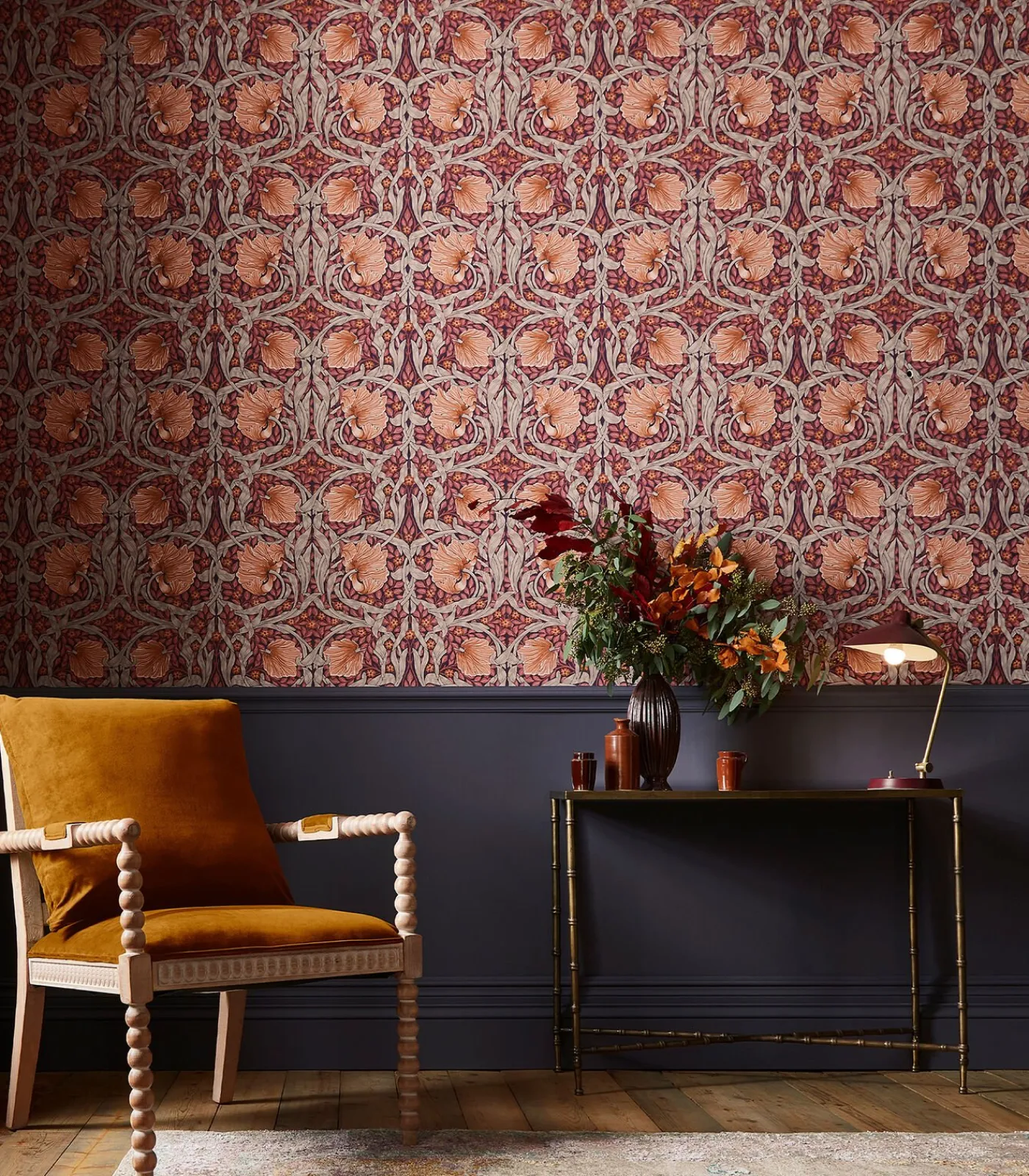 Transformeer uw ruimte met het betoverende Pimpernel Plum behang. Met een rijke paarse kleur en een delicaat patroon van pimpernel bloemen, voegt dit behang een vleugje romantiek en verfijning toe aan uw interieur. Het patroon herhaalt zich elke 41,14 centimeter, waardoor een harmonieuze en gebalanceerde uitstraling ontstaat.Dit hoogwaardige behang, geproduceerd in het Verenigd Koninkrijk, biedt niet alleen een prachtige esthetiek, maar ook duurzaamheid en kwaliteit.