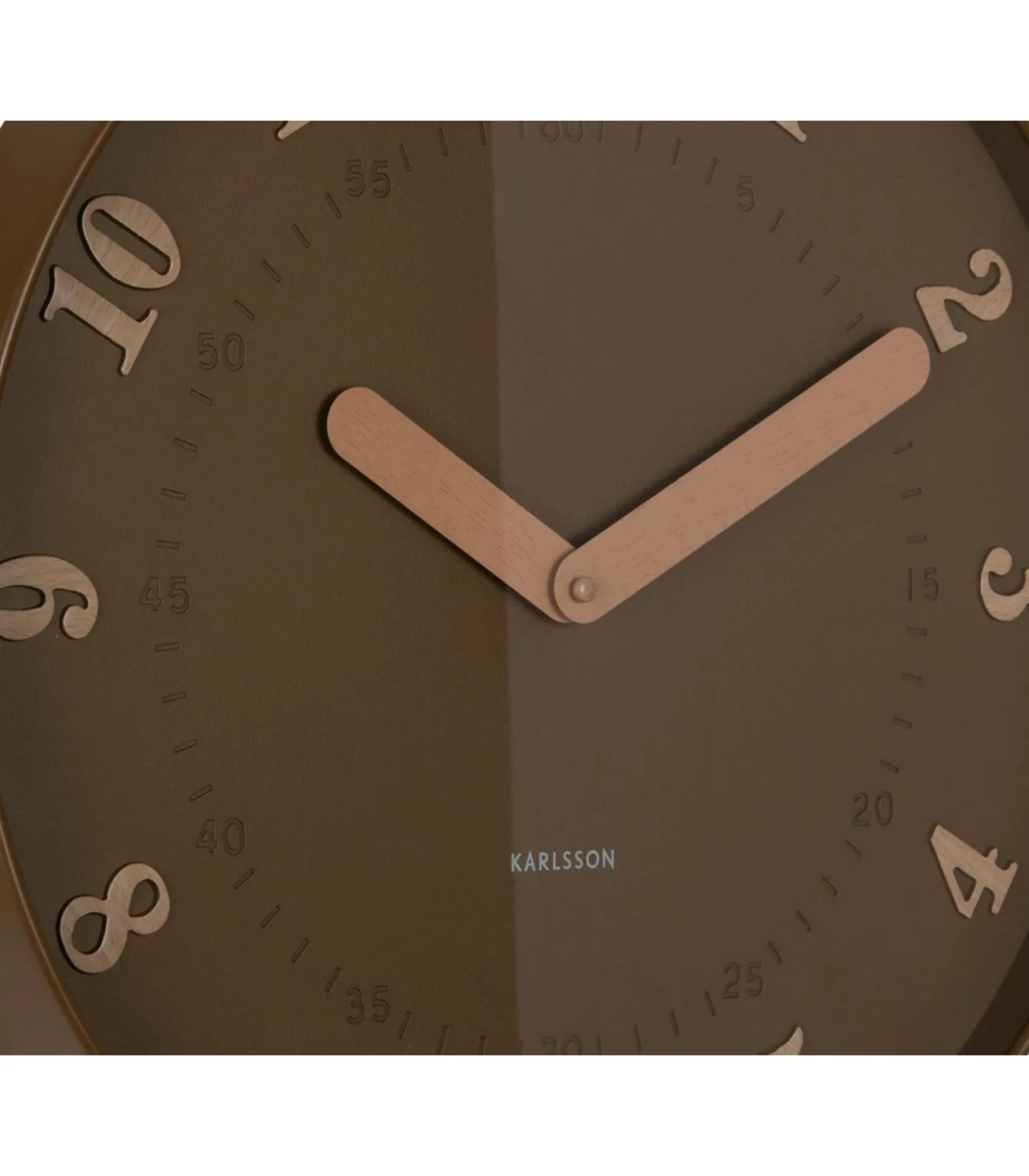 De Amena wandklok van Karlsson speelt met contrast. De wijzerplaat is strak en modern, terwijl de cijfers een warme, natuurlijke uitstraling hebben dankzij de houtkleurige afwerking. De robuuste cijfers en brede wijzers zorgen voor een duidelijke tijdsaanduiding, zonder in te leveren op stijl. De Amena past perfect binnen het Natural Glow thema en voegt karakter toe aan iedere ruimte. Een moderne klassieker met een subtiele knipoog naar natuurlijke materialen.