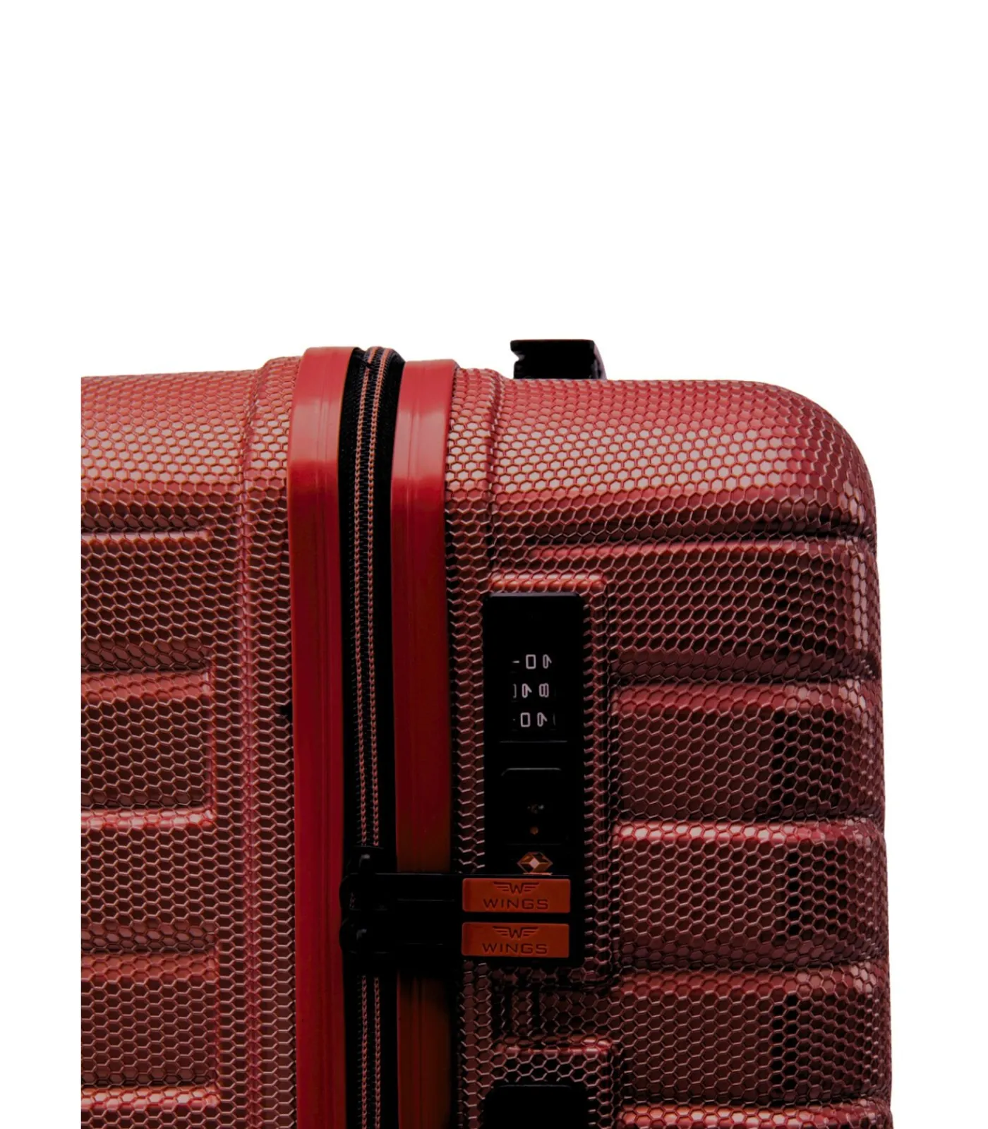 De WINGS CRAKE koffer in maat L is de grootste koffer uit de serie en biedt met een volume van ca. 96 liter voldoende ruimte voor langere reizen. De buitenkant is gemaakt van hoogwaardig polycarbonaat, dat extreem bestand is tegen krassen, breuk en vervorming. De opvallende honingraatstructuur van het oppervlak zorgt voor extra schokbestendigheid en geeft de koffer een moderne, elegante uitstraling.De afmetingen zijn ongeveer 76 × 49 × 29 cm, inclusief alle uitstekende elementen. Maattolerantie: +/– 2 cm. Ondanks de afmetingen blijft de koffer gemakkelijk te manoeuvreren dankzij de vier 360° zwenkwielen met dubbele lagering – zowel op het vliegveld als in een stedelijke omgeving. De in hoogte verstelbare telescopische handgreep past zich aan de individuele gebruiker aan en maakt het trekken of duwen gemakkelijk.Extra veiligheid wordt geboden door een geïntegreerd TSA–combinatieslot, wat vooral voordelig is als je internationaal reist. Binnenin maakt de koffer indruk met twee ruime hoofdcompartimenten, waarvan er één kan worden afgesloten met een rits en de andere is uitgerust met elastische inpakriemen. Een groot binnenvak van gaas en een klein vak voor accessoires helpen om alles georganiseerd te houden.De zwarte binnenvoering met discreet merklogo benadrukt de hoogwaardige afwerking. Een haak aan de zijkant dient als praktische houder voor tassen of reisaccessoires. Met een gewicht van ca. 4,1 kg combineert het formaat WINGS CRAKE L maximale capaciteit met eersteklas kwaliteit – ideaal voor frequente reizigers die waarde hechten aan functionaliteit, comfort en design.