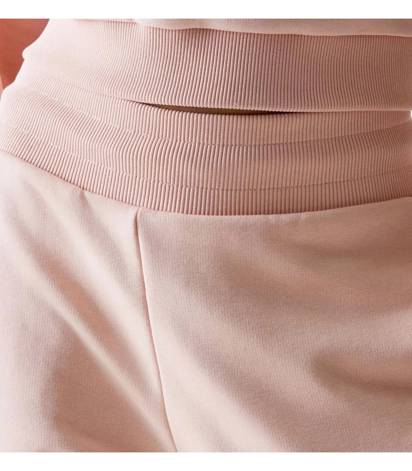 Kleur: Pastelroze. Samenstelling: 63% katoen, 37% polyester. Pasvorm: Rechte pijpen. Sluiting: Verstelbaar trekkoord. Details: Damesjoggingbroek van French Terry met zakken aan de voorkant, New York Yankees–logo op de rechterzak en geborduurde New Era–vlag op de linkerzak. Gebruik: Ideaal voor een casual en vrouwelijke look, perfect voor in de vrije tijd of te combineren met een bijpassende sweater voor een eigentijdse, sportieve stijl.