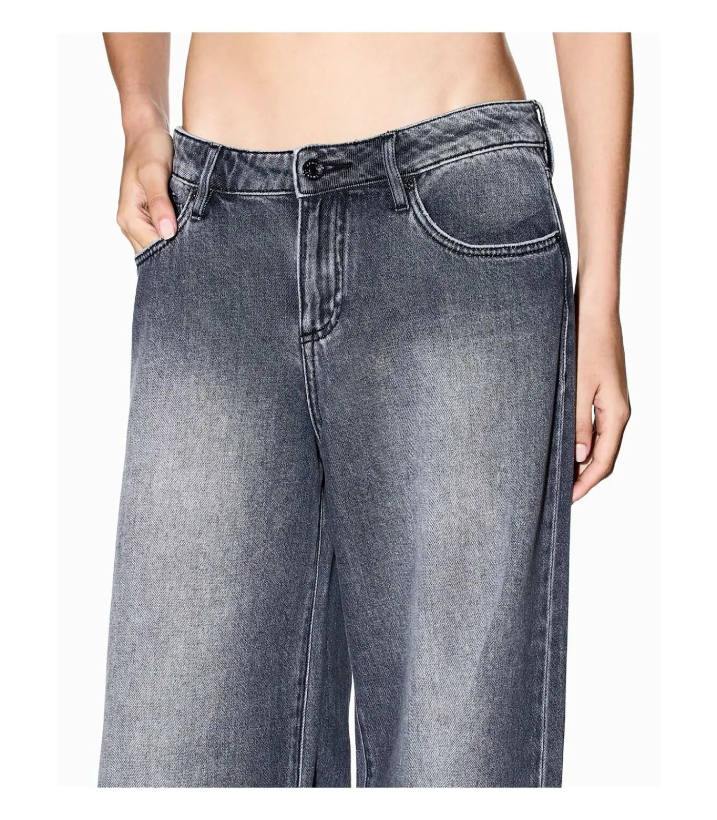 Kleur: Grijze denim. Samenstelling: 100% katoen. Pasvorm: Losse pasvorm. Sluiting: Rits en logoknoop. Lengte: Volle lengte. Details: Five–pocketmodel met een distressed grey wash, ton–sur–ton stiksels, riemlussen, logolabel op de achterkant. Gebruik: Armani Exchange damesjeans met een eigentijds design, ideaal voor een urban en trendy look met een onderscheidende touch.