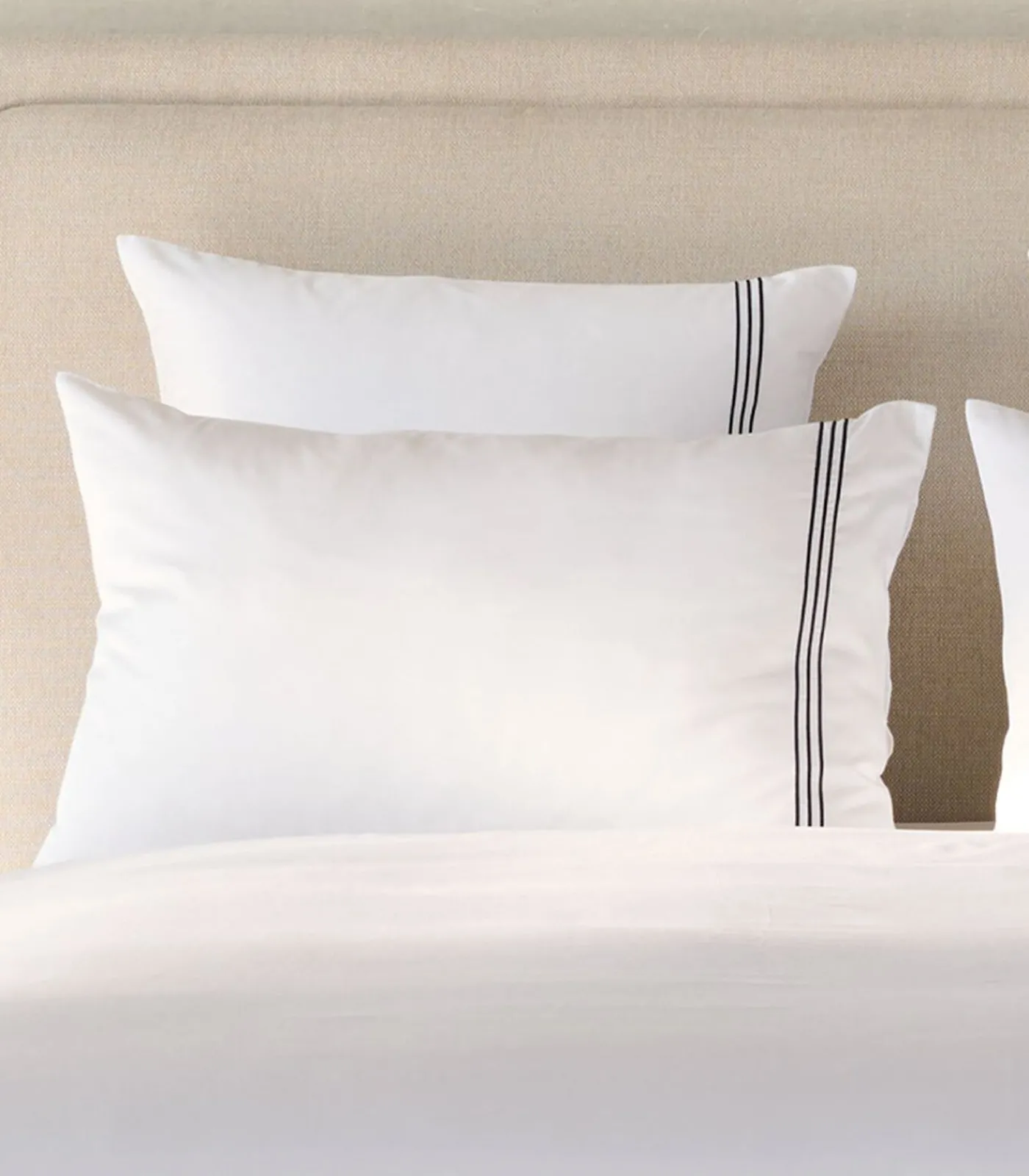 Voorkant effen wit met drievoudige marineblauwe festonsteek – Achterkant effen wit