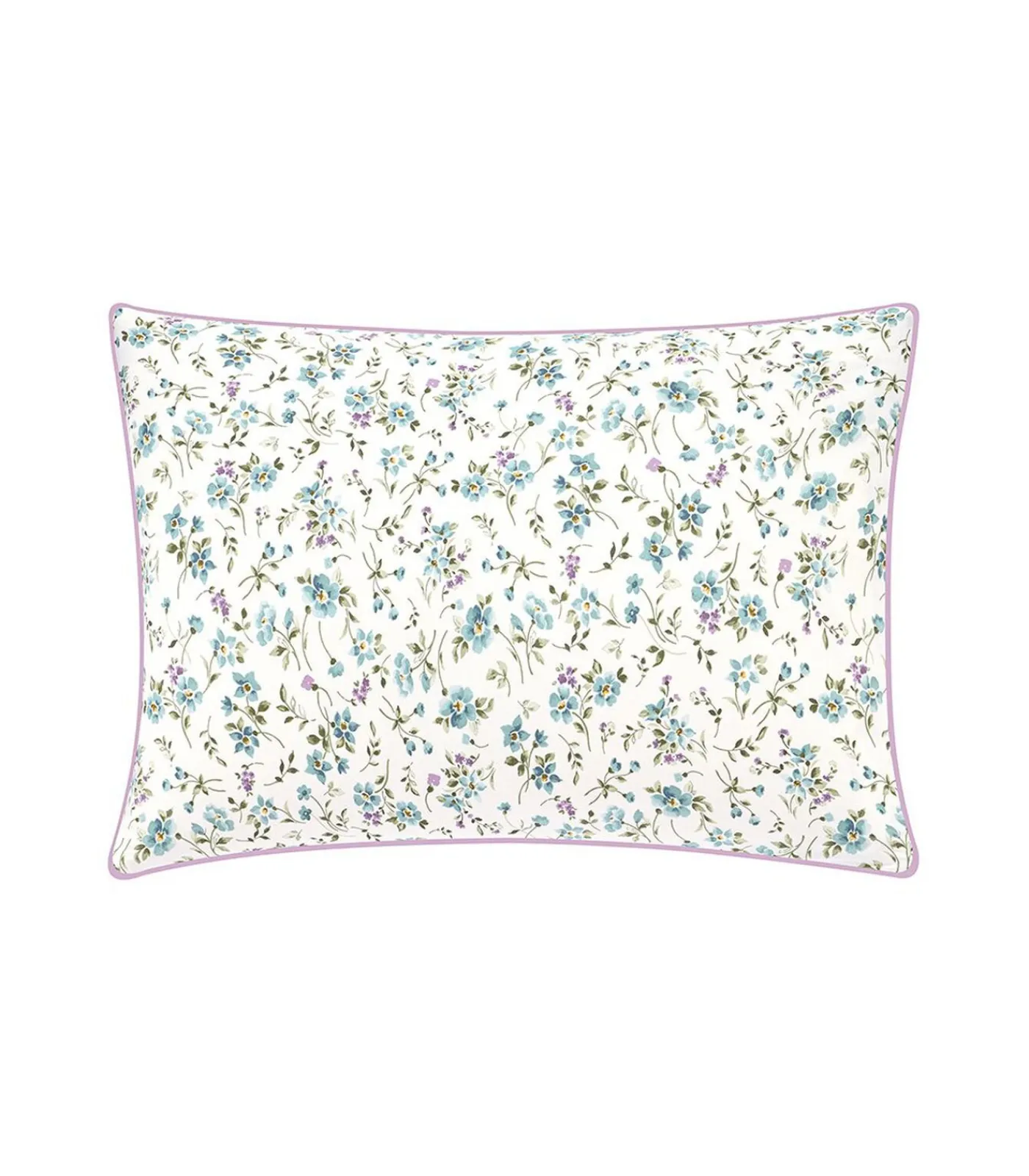 Print van viooltjes in blauwtinten en paars op ivoorkleurige achtergrondPrint van kleine horizontale blauwgroene strepen op ivoorkleurige achtergrond