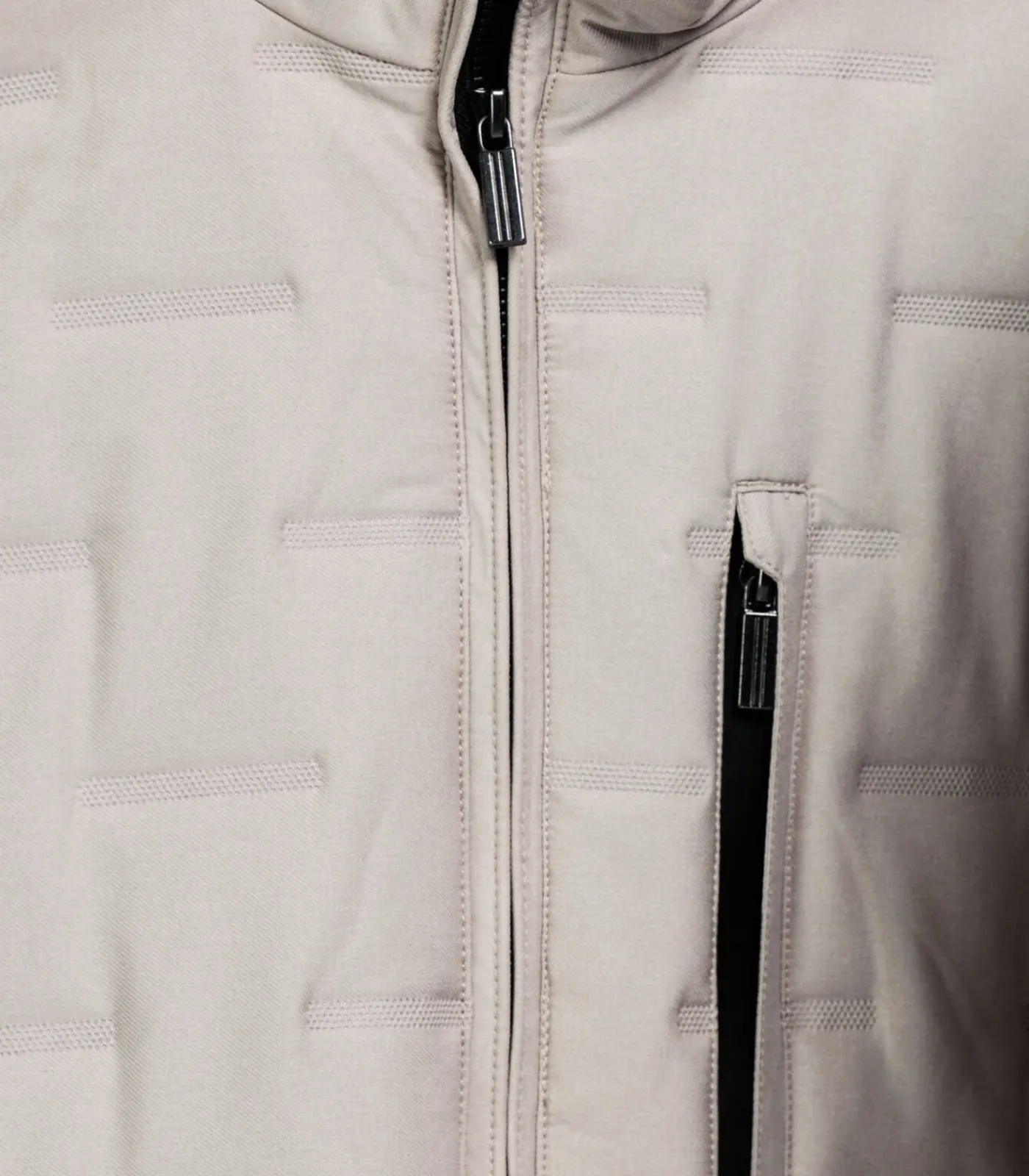 Deze sportieve jas is uitgevoerd in een twill met membraan en een subtiel embossed dessin. Het model heeft een regular fit, opstaande kraag, ritssluiting en zakken met rits in de zijnaden. Binnenin bevindt zich een handige doorvoeropening voor een oordopjes– of oplaadkabel, zodat je apparaten veilig in je binnenzak kunt opbergen. De combinatie van het technische materiaal en de verfijnde afwerking maakt deze jas zowel stijlvol als praktisch. Artikelnummer 522350–81