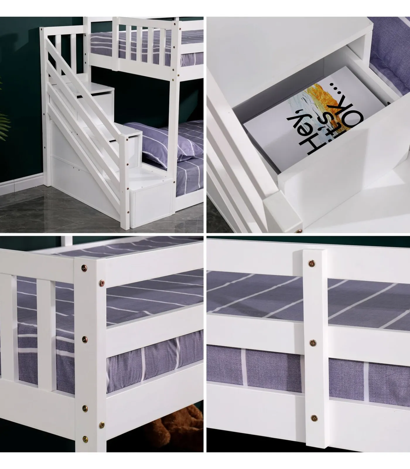 Creëer een slim slaapgedeelte dat de inrichting van uw kinderkamer optimaliseert met Happy Garden. Het witte CELESTINE kinderbed heeft standaard afmetingen van 190 x 90 cm en biedt plaats aan twee jonge kinderen in dezelfde kamer. Comfortabel en veilig, het bevordert een zachte slaap terwijl het ruimte bespaart. Om in het bovenste bed te komen, kan het kind veilig de trap opklimmen die voorzien is van een leuning. Het heeft ook twee ladebakjes voor extra opbergruimte voor kleding of speelgoed. Dit stapelbed met 2 bedden is dus het ideale meubelstuk om de slaapkamer van uw kleintjes gemakkelijk in te richten en hen een goede nachtrust te garanderen.