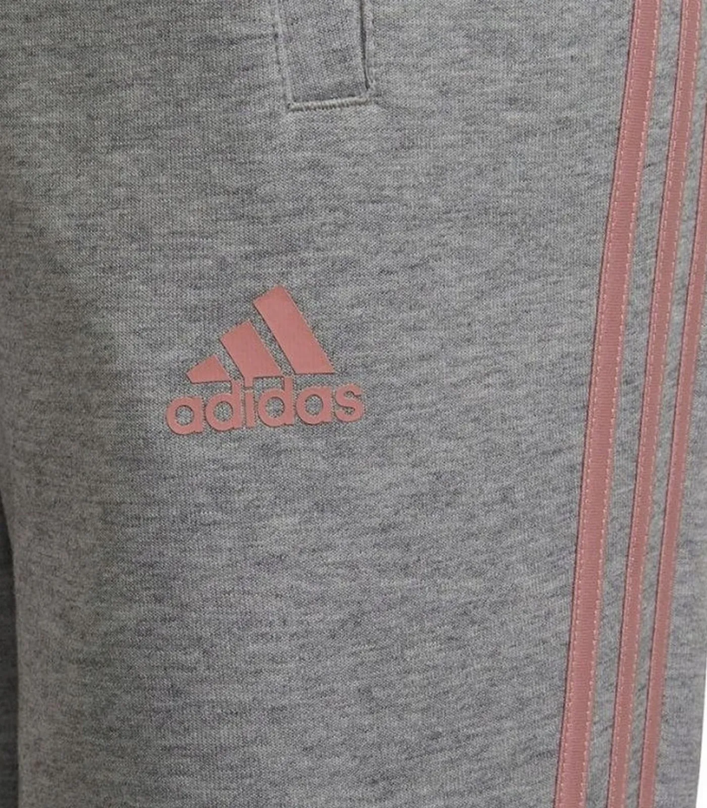 Adidas roze tapered–leg joggingbroek gemaakt van 67% katoen en 33% gerecycled polyester met zachte aanraking. Het ontwerp omvat het Adidas logo en een zijstreep, met taps toelopende poten. Deze jas heeft twee zijzakken en de taille is elastisch, binnenkoord. De manchet is gemonteerd.