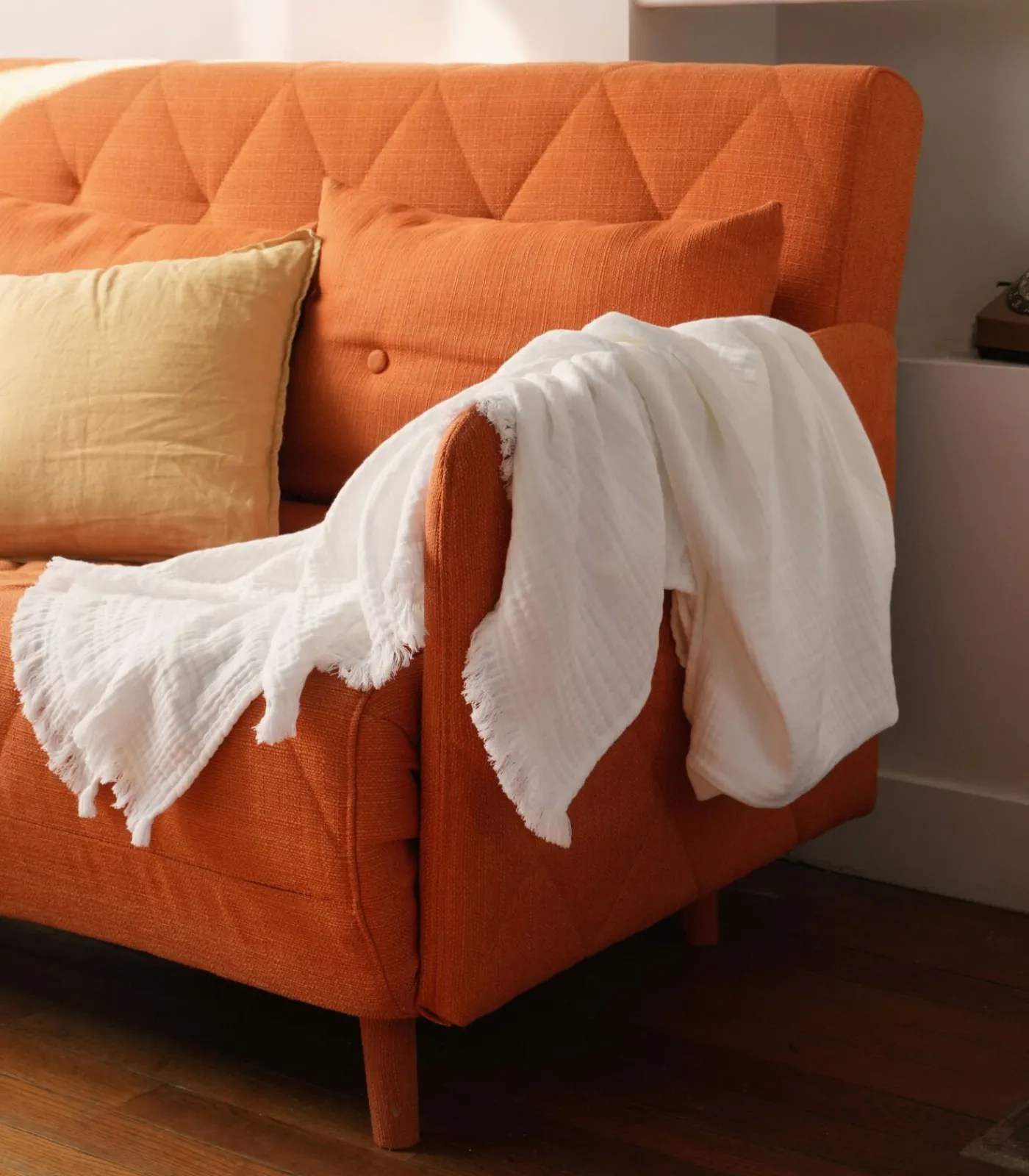 Ontdek het gamma NATUURLIJK RELIËF met de BLANC CERISE plaids. Wikkel je er ’s ochtends in bij een kopje koffie. Leg hem ’s middags op je schoot terwijl je thuis werkt. En ’s avonds voor het kijken van een film. Of het nu gemaakt is van katoenen gaas, linnen, katoen of wol en kasjmier, een throw vind je op elk moment van je leven. Een vleugje zachtheid en comfort, met een groot decoratief potentieel: een must–have. Als je ook van die zachte, wafelachtige look houdt… Ons viervoudig katoenen gaas, met dezelfde toewijding gemaakt in Portugal, biedt plaids met een nog zachter gevoel en een wafelachtige valling met hun unieke gewicht van 370g/m2. Ze zijn comfortabel en gemakkelijk te onderhouden en hebben het Oeko–tex certificaat.Viervoudig katoenen gaas 370 g: dit zorgt voor meer stevigheid en weerstand na verloop van tijd. Het voelt nog zachter aan en valt soepel.Gaufré en Moelleux look: dit geeft een zacht, luchtig gevoel. Dit maakt het product zachter en strijken totaal overbodig.Een design dat bij je past: kleuren die passen bij onze slaapkamer– en woonkamercollecties. Ze gaan jaren mee zonder uit de mode te raken.Made in Portugal: In Guimarães, sinds 2011 met dezelfde partner, het dichtstbijzijnde land waar we alle productiestappen kunnen doen: weven, verven, opmaken. Dit is niet langer mogelijk in Frankrijk, maar we zijn er zeker van dat de arbeidsomstandigheden worden gerespecteerd. OEKO–TEX gecertificeerd: dit garandeert controle van resthoeveelheden schadelijke stoffen in zeer lage verhoudingen, zonder enig gevaar voor de mens OEKO–TEX® standaard 100 CQ901–1 IFTH gecertificeerd.