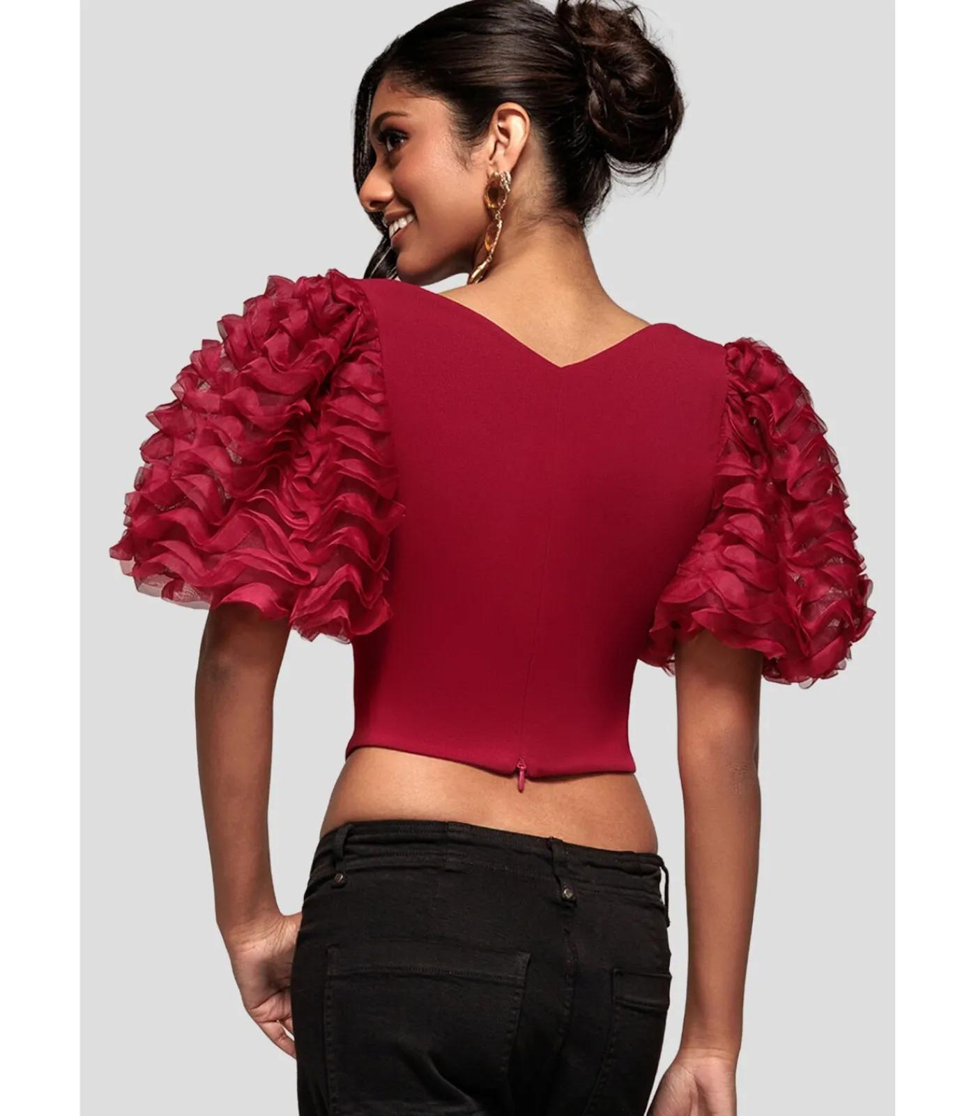 Bordeaux is nog nooit zo verleidelijk geweest. De Goddiva 3D Textured Sleeve Scuba Corset Top heeft een vierkante halslijn en opvallende pofmouwen die een bijzonder vrouwelijk silhouet creëren. Korte mouwen met ingewikkelde 3D textuurdetails geven de top een vleugje couture–geïnspireerd drama, terwijl de fluwelen zoom zorgt voor een luxueuze, moeiteloos chique afwerking. Perfect voor romantische afspraakjes, glamoureuze dinertjes of onvergetelijke avondjes uit, deze bordeaux korset top levert een high–end look tegen een betaalbare prijs. De getextureerde scubastof vormt het figuur, terwijl de pofmouwen een modieuze high–fashion touch toevoegen. Dit limited edition ontwerp kan steeds opnieuw gestyled worden en is de ideale keuze voor speciale gelegenheden waar elegantie en verleiding elkaar ontmoeten.