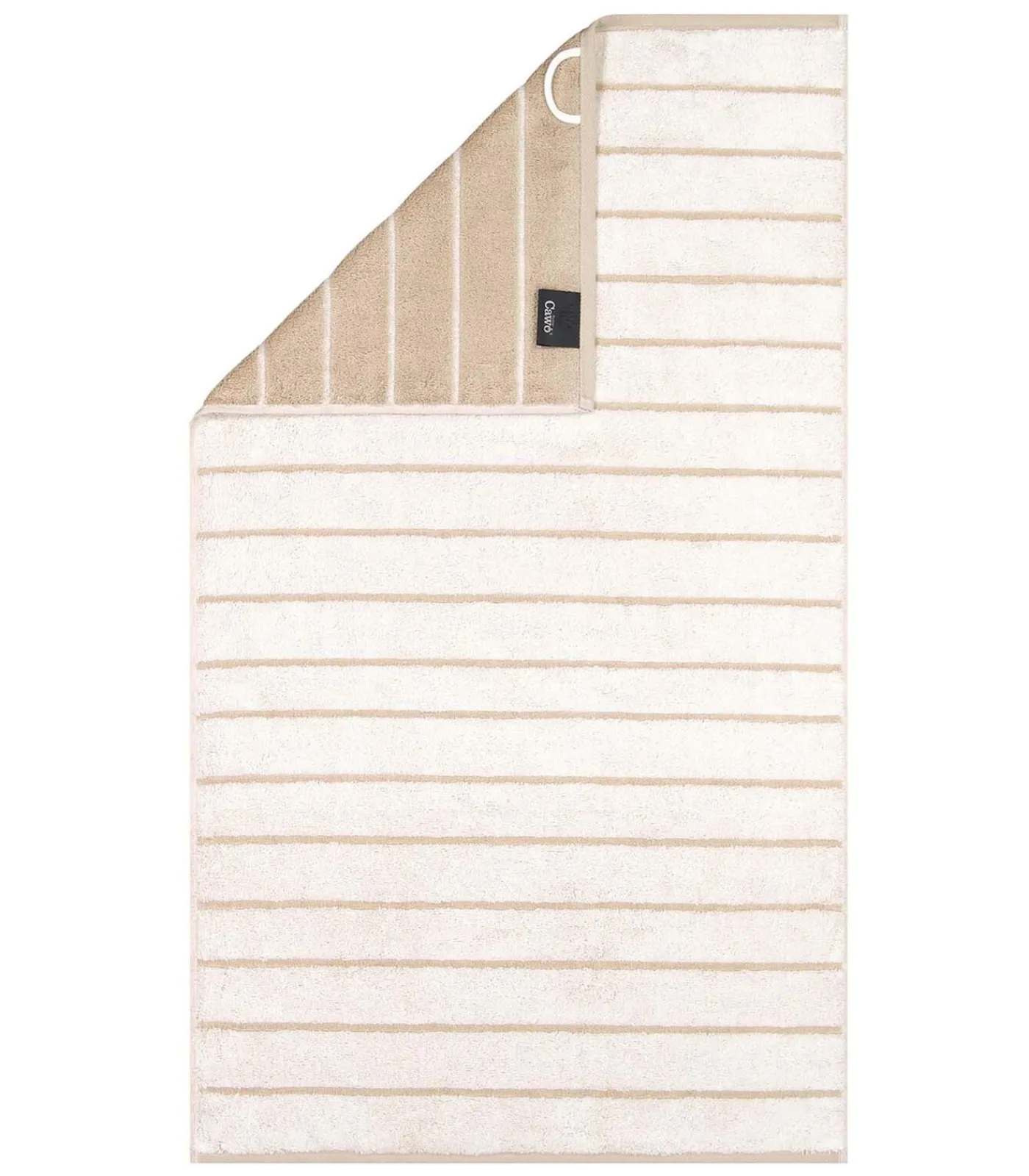 Hoogwaardige gastendoek van het merk CAWÖ. Gestreept dessin in omkeerbare look in extra donzige badstof kwaliteit. 100% katoen – huidvriendelijk, onderhoudsvriendelijk, geschikt voor de droogtrommel.