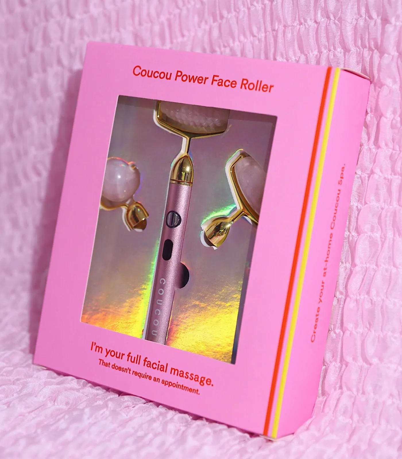 Creëer je eigen Coucou Home Spa en verbeter de huid met deze hoogfrequente alles–in–één gezichtsverzorgingstool met 3 verschillende opzetkopjes gemaakt van 100% rozenkwarts. Geniet van uw dagelijkse massage in minder dan 5 minuten! Met de perfecte combinatie van oude wijsheid en moderne ontwikkelingen, versterkt de Coucou Power Face Roller de voordelen van traditionele Coucou Rolling. Creëer je eigen Coucou Spa, begin met rollen en laat de trillingen het werk doen. De trillingen ontspannen de spieren, verlichten spanning in het gezicht, verbeteren de bloedstroom en maximaliseren de andere voordelen van het rollen van het gezicht. Wissel af tussen de Smooth en Spiked Roller om te variëren tussen intensiteit en sterkere stimulatie.–Ontspannende gezichtsmassage–Verzacht en verlicht de spanning in het gezicht–Lift en sculpt gezicht en hals –Stimuleert bloedcirculatie–Stimuleert lymfedrainage–Stimuleert collageenproductie–Vermindert fijne lijntjes–Vermindert zwellingen–Geeft de huid een natuurlijke glow