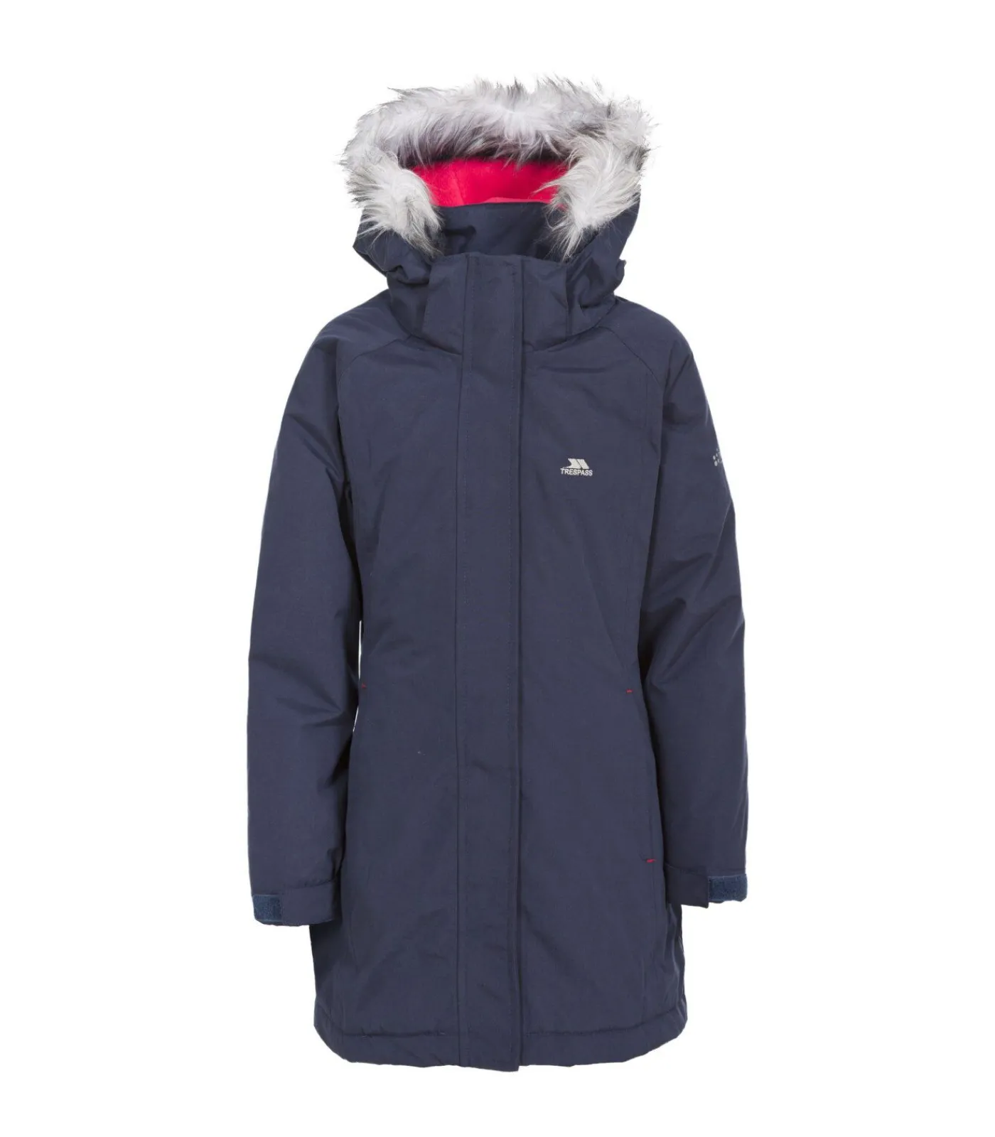 Dit product is een waterdichte parka voor meisjes van Trespass. Het heeft een licht gewatteerde constructie en een langere lengte voor bedekking. De jas heeft een afneembare capuchon met studs, een afneembare bontrand en twee zakken aan de onderkant. De manchetten zijn elastisch met verstelbare lipjes voor een goede pasvorm. De buitenkant en voering zijn gemaakt van polyester materialen en de vulling is van polyester voor warmte. De maatopties variëren van ongeveer 21–31 inch op de borst en passen meisjes van 2–3 jaar tot 11–12 jaar.