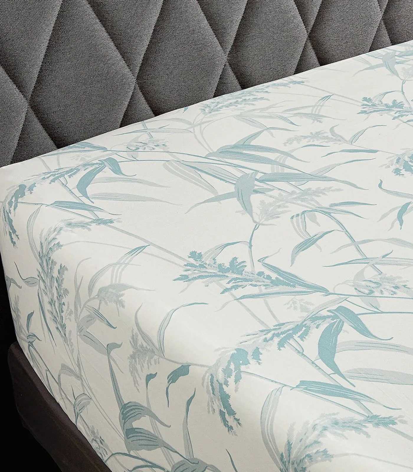 Bedrukking van planten op een ivoorkleurige achtergrond.Hoeslaken met een hoogte van 35 cm