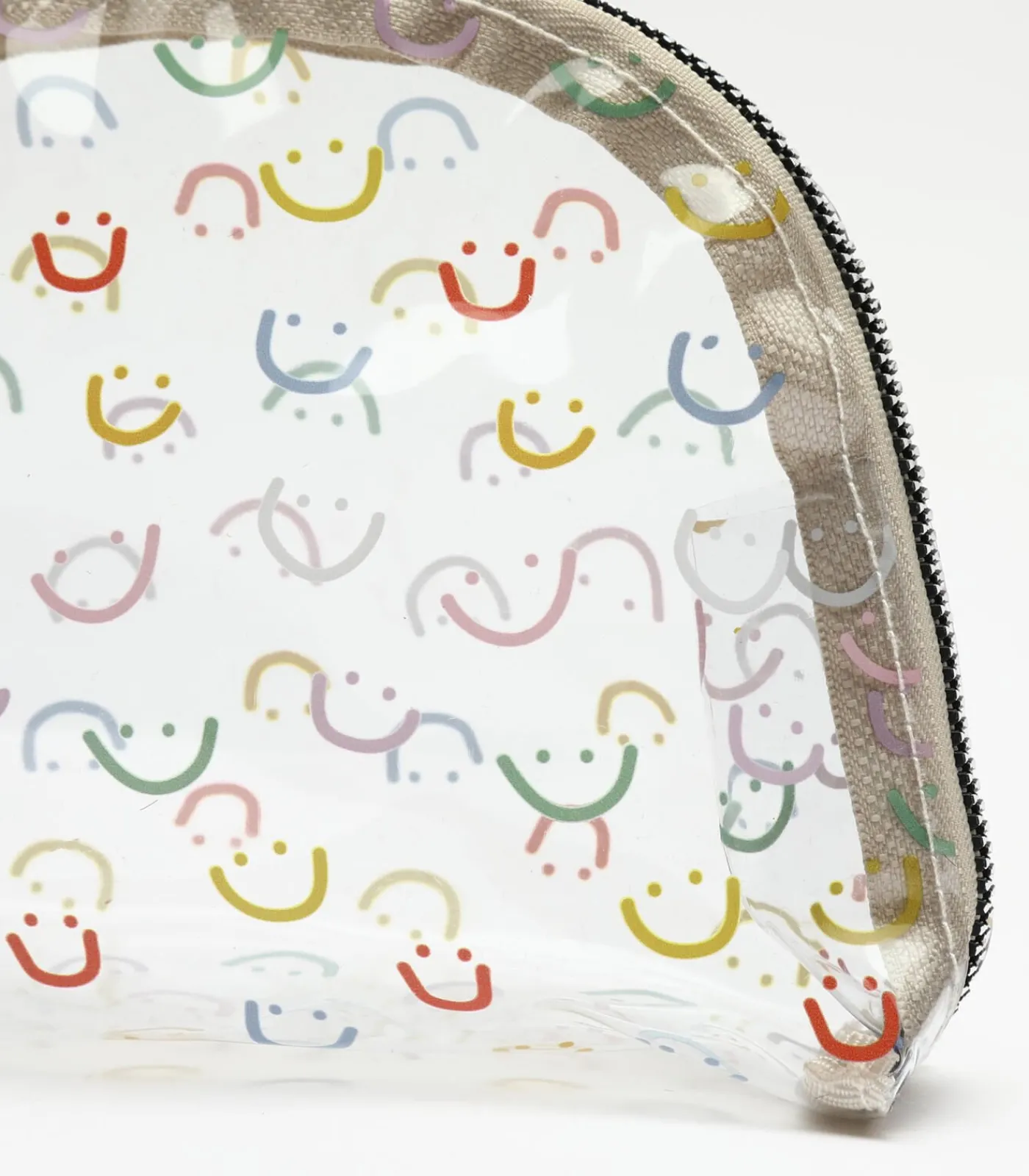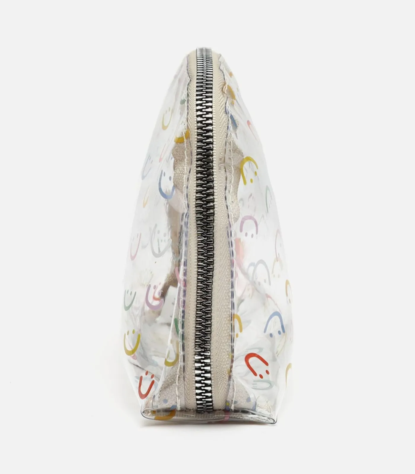 Dit kleine transparante toilettasje met kleurrijke smileyprint is een leuk en praktisch accessoire voor onderweg of om je beautyproducten in te bewaren. Dankzij het transparante ontwerp kun je de inhoud gemakkelijk zien en snel vinden wat je nodig hebt. De ritssluiting zorgt ervoor dat je spullen altijd veilig zijn.