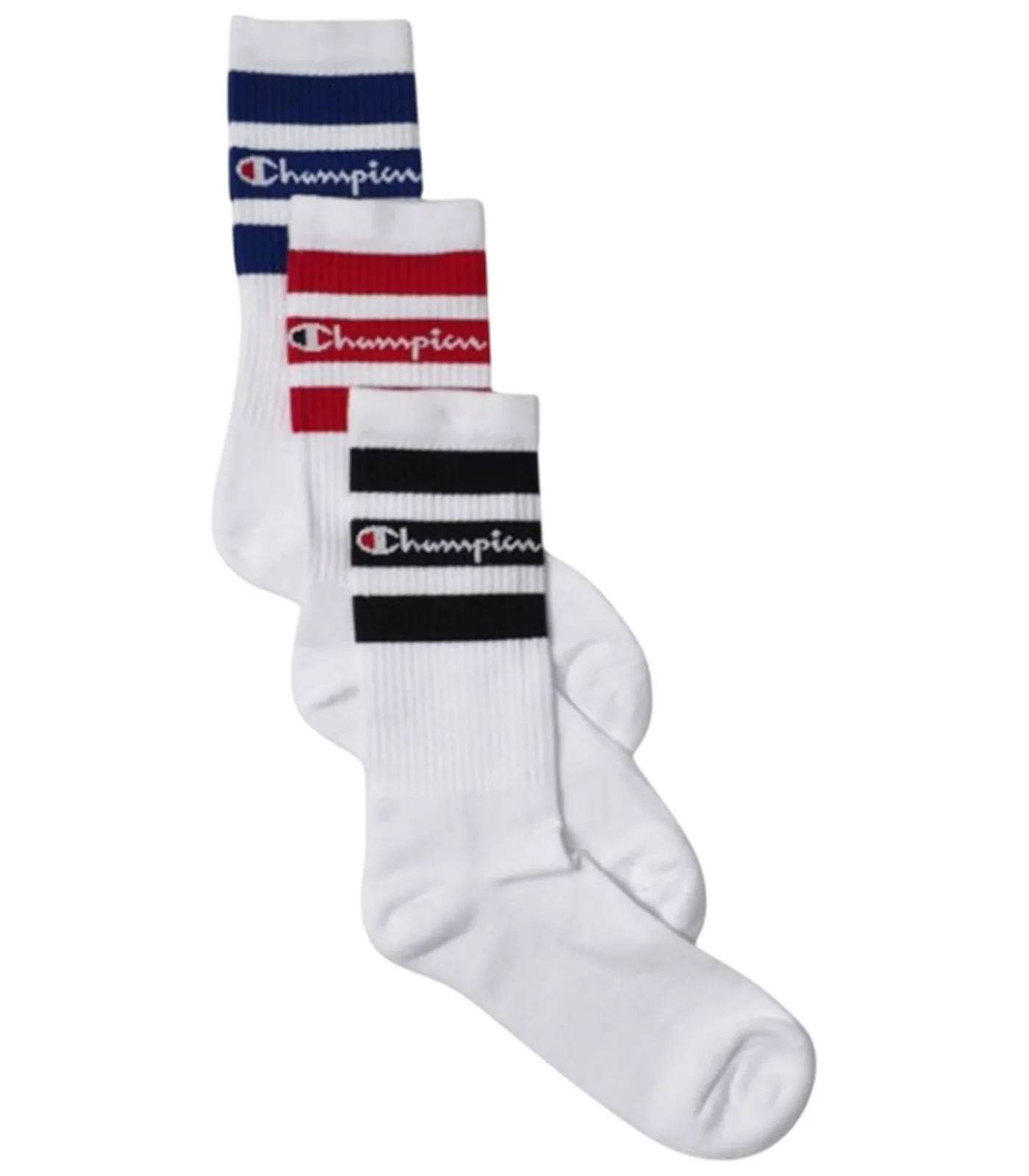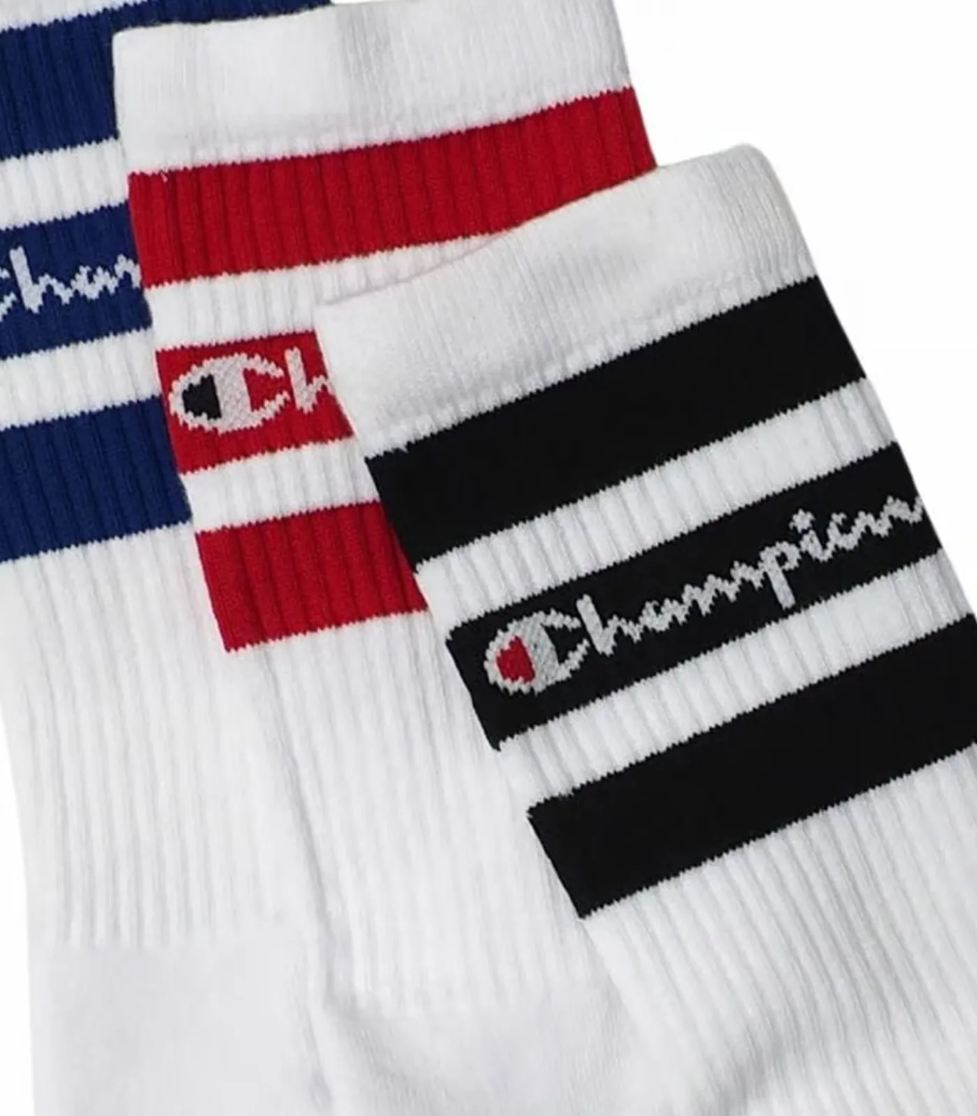 Champion–Classic Witte Sokken: Deze strakke en klassieke sokken van de merk Champion zijn perfect voor dagelijks gebruik. Ze bestaan uit een gemengd stof van 65% katoen, 32% polyester en 3% elastane. Deze stof bevat Ademend technologie voor adembaarheid, duurzaamheid en elasticiteit. De manchet is verstevigd en bedekt met badstof. Ook heeft de manchet een elastiek element voor comfortabele dragen.