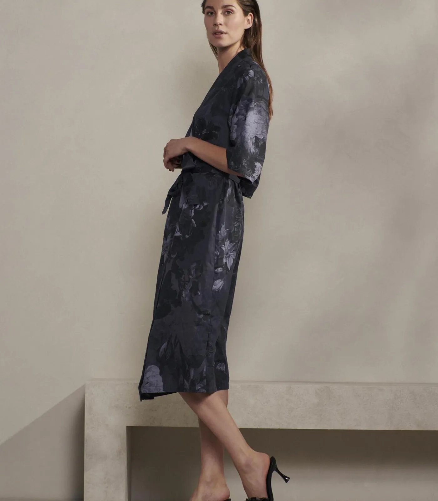 Met deze kimono van ESSENZA stap je elke ochtend sierlijk uit bed. De Floor print die prijkt op deze kimono is een afgeleide van onze bestseller print Fleur, maar dan uitgevoerd in tonale kleuren. Hierdoor krijg je een prachtige, subtiele en klassieke print die zorgt voor een instant chique look. De kimono valt tot op de knie, heeft elegante driekwartsmouwen en sluit met een strikceintuur. Gemaakt van 100% katoen satijn en dat zit heerlijk en kleed ook nog eens mooi af. De stof voelt soepel, glad en heeft een lichte glans.