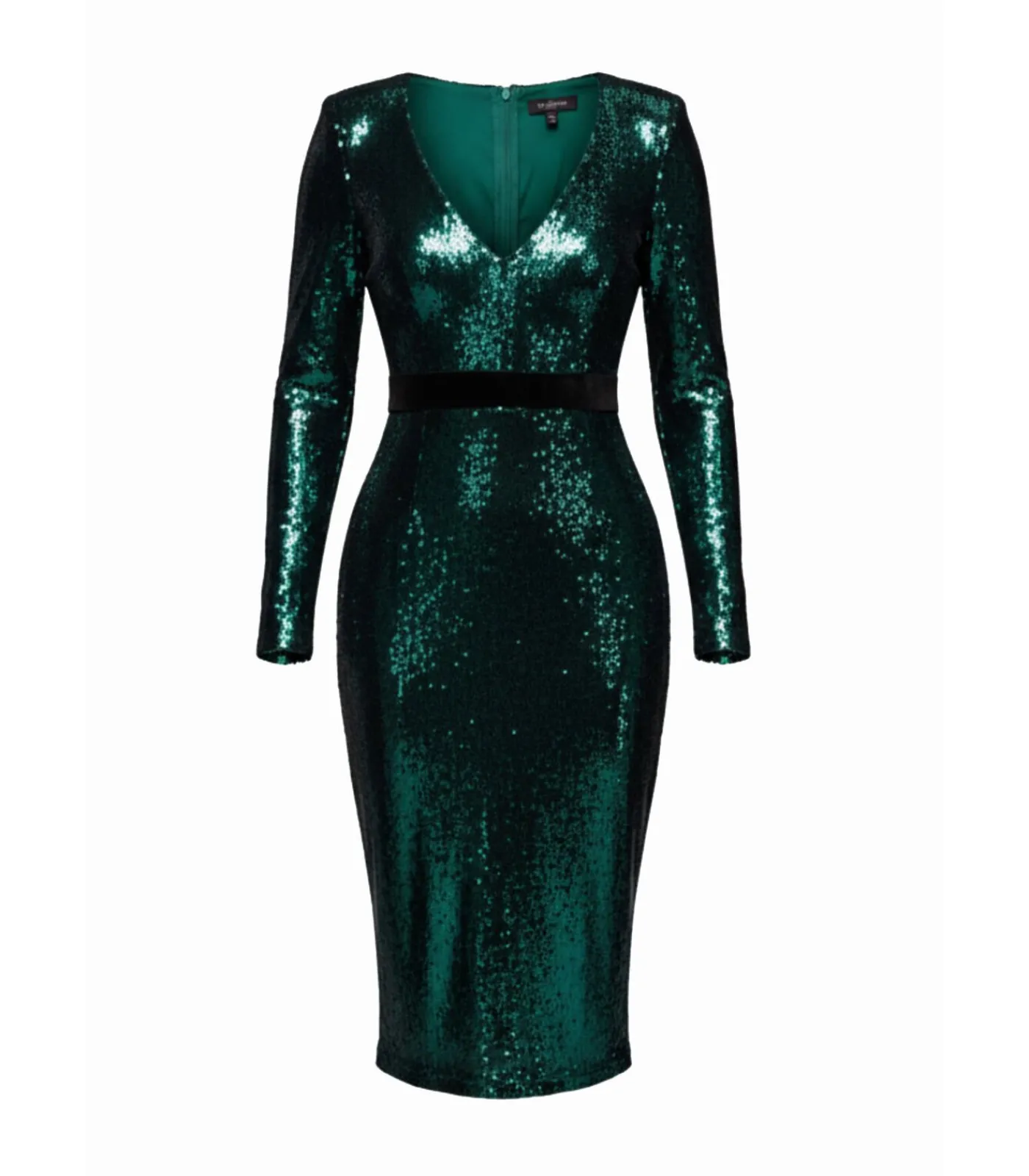 Maak een onvergetelijke verschijning op je volgende feest of speciale gelegenheid met de Liquid Sequin Midi Dress. Deze jurk straalt pure glamour uit en is versierd met fonkelende lovertjes. De midilengte combineert een klassieke en moderne stijl en zorgt ervoor dat je op elk evenement in het middelpunt van de belangstelling staat. De lange mouwen en aansluitende pasvorm zorgen voor comfort en elegantie tegelijkertijd. Het afneembare korsetdetail maakt de look helemaal af en zorgt ervoor dat je de outfit naar wens kunt variëren. De pailletten vangen het licht bij elke beweging en laten je schitteren. Stap in de schijnwerpers en maak elke gelegenheid onvergetelijk – met de Liquid Sequin Midi Dress maak je een stijlvol, elegant en glamoureus statement.